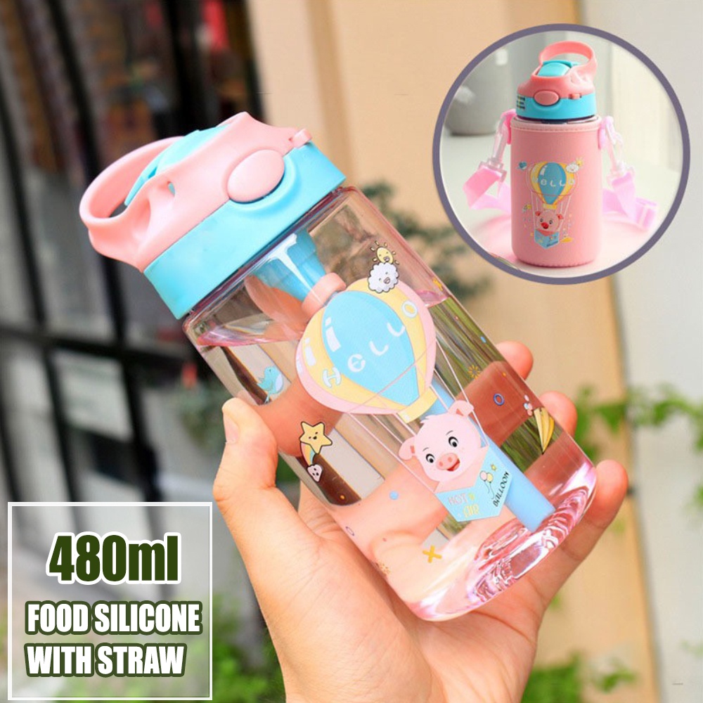 Cute Tumbler With Straw for Kids Children's Straw Cup 480ml Cartoon Sippy Cup Water Tumbler