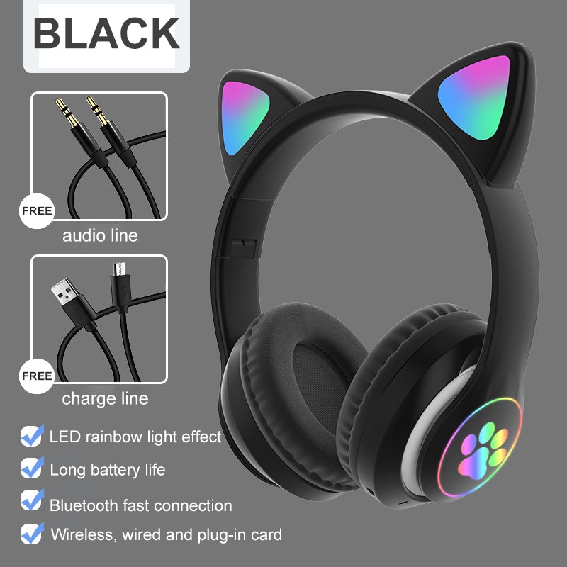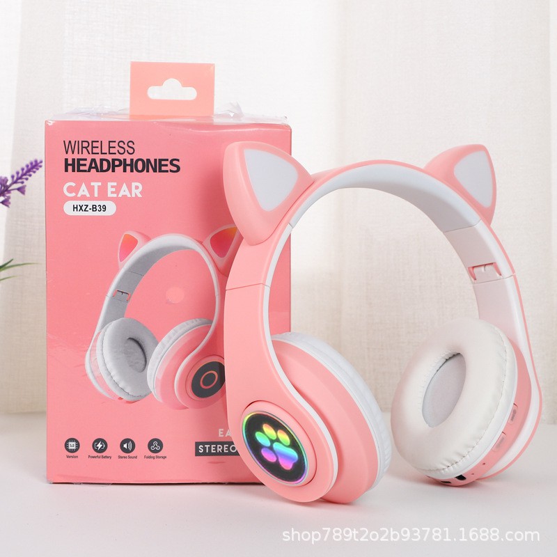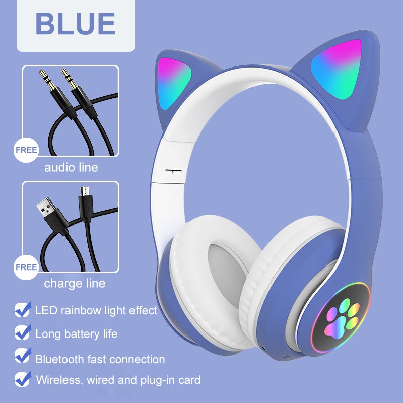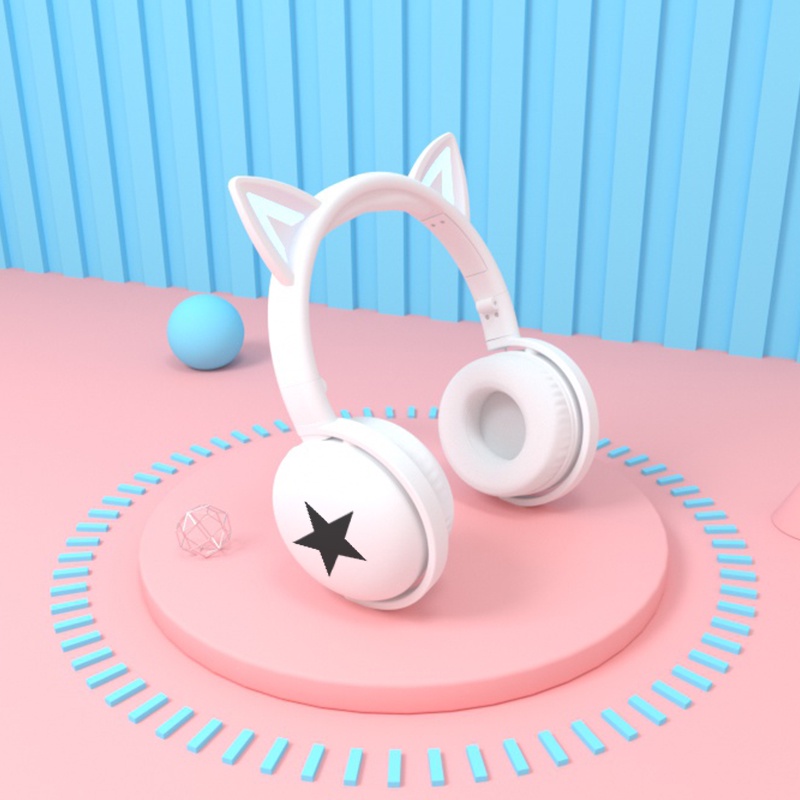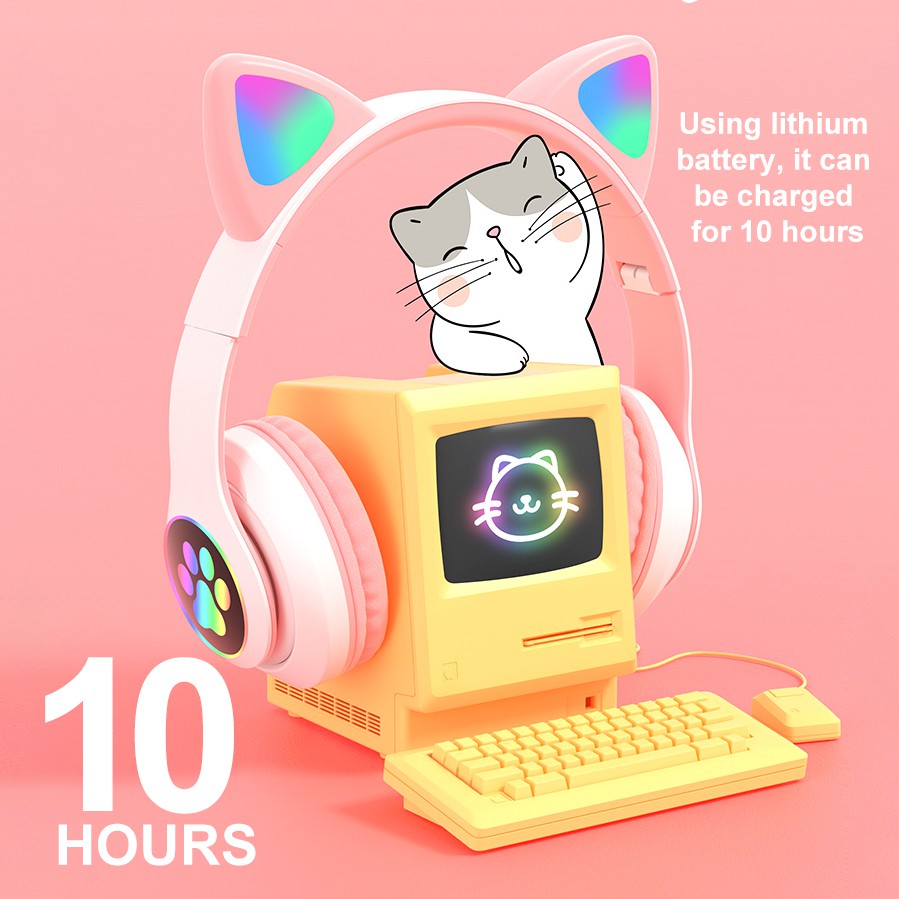 Cute cat ears Gaming Headset Bluetooth 5.0 Pink stereo Wireless headphone with mic microphone LED light Earphone for Cellphone girls kids computer pc phone purple hearphone hello kitty 耳机