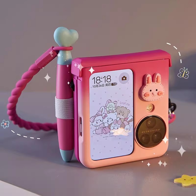 Cute flip case with stylus and lanyard for Samsung Z Flip 3 Z Flip 4 Z Flip 5 Z Flip 6 Z Flip 7 ZFlip5 OPPO Find N2 Flip / OPPO Find N3 Flip