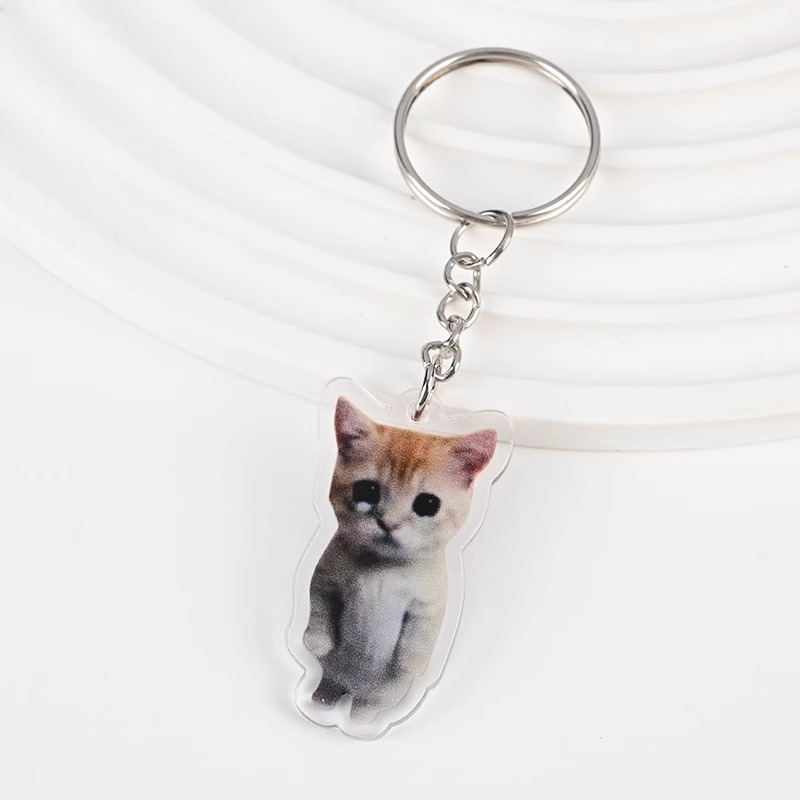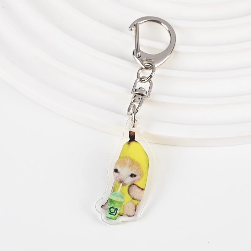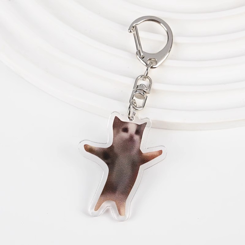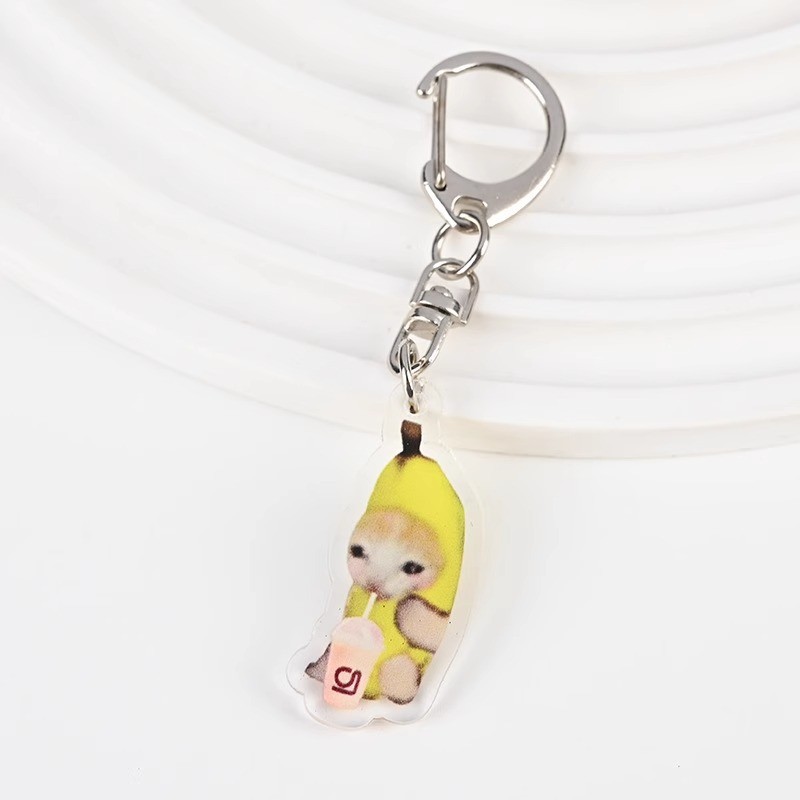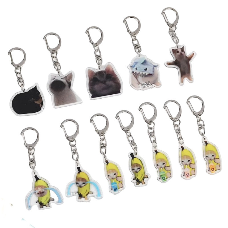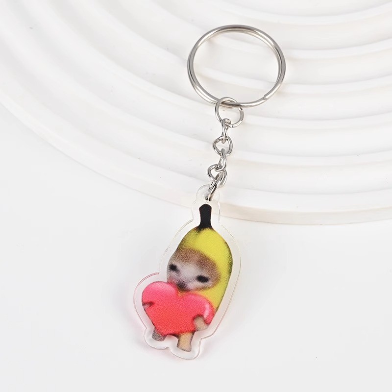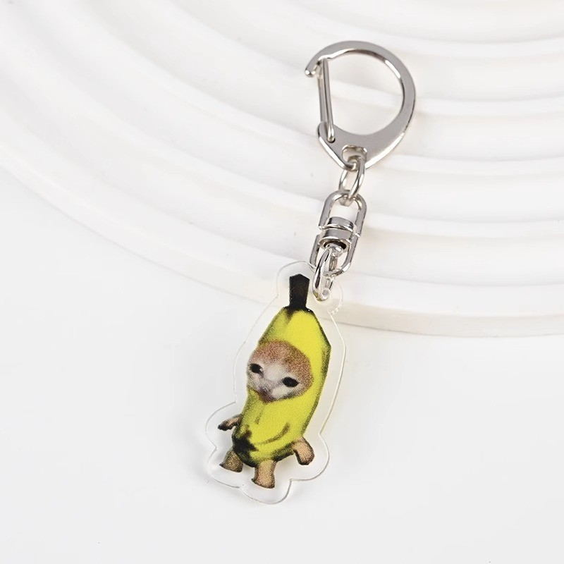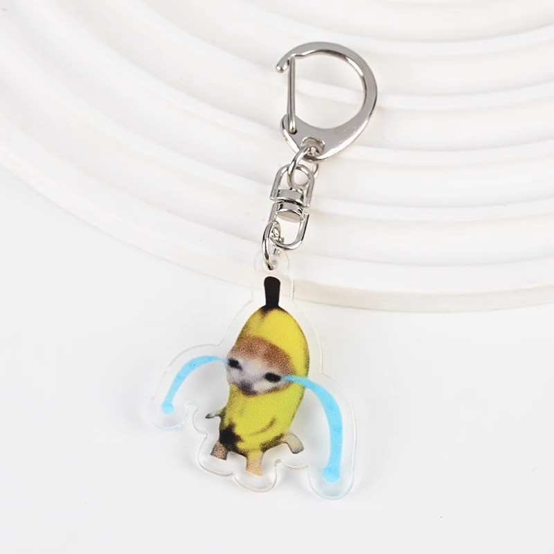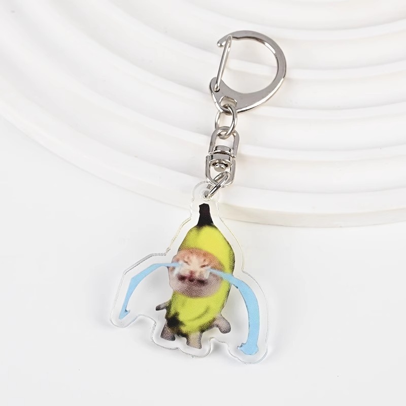 Cute meme Crying Banana Cat Keychain Acrylic Emoji Cartoon Key Ring