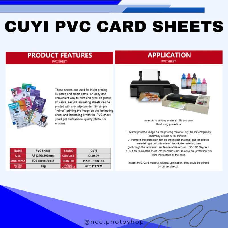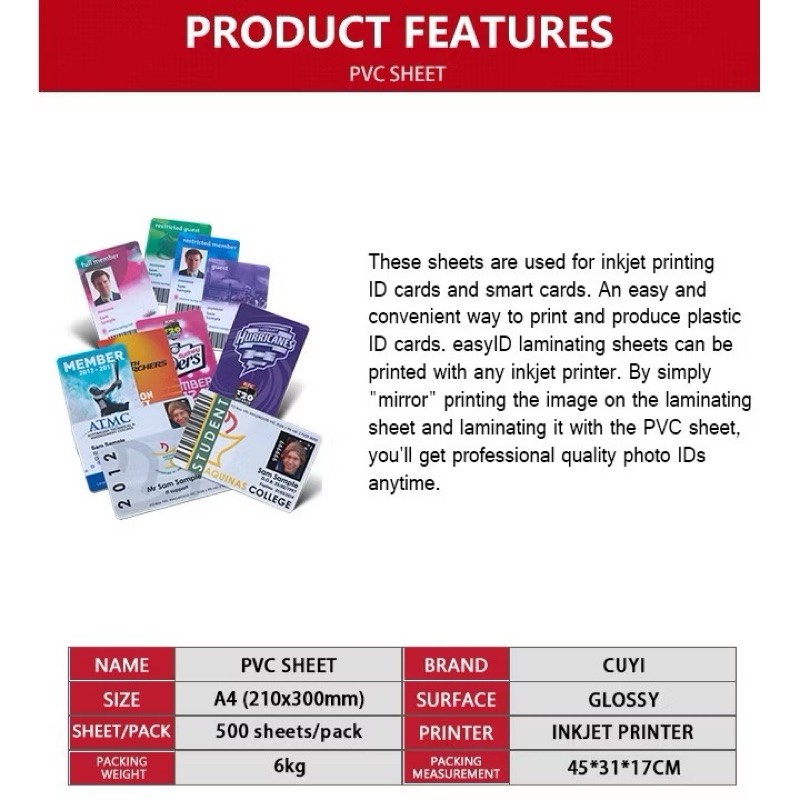 Cuyi A4 PVC Card Sheets 50Sets For ID Printing Bag Tag Calling Card Making