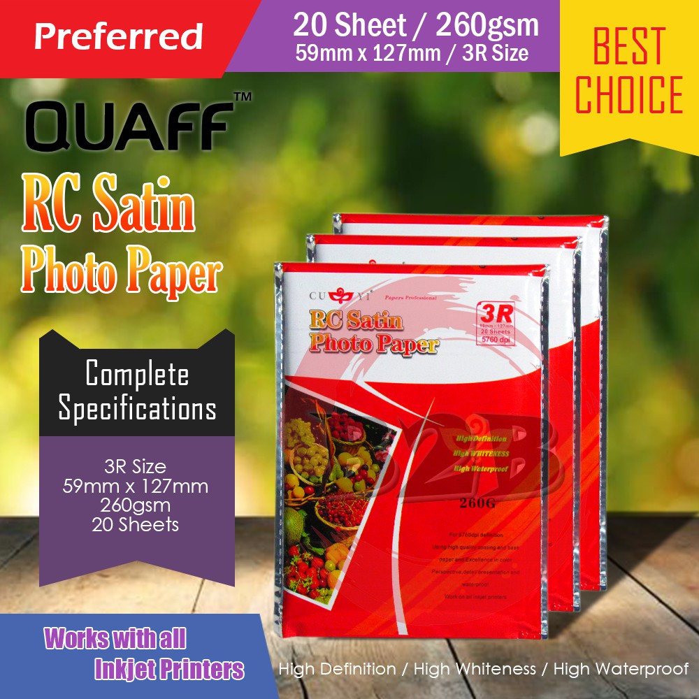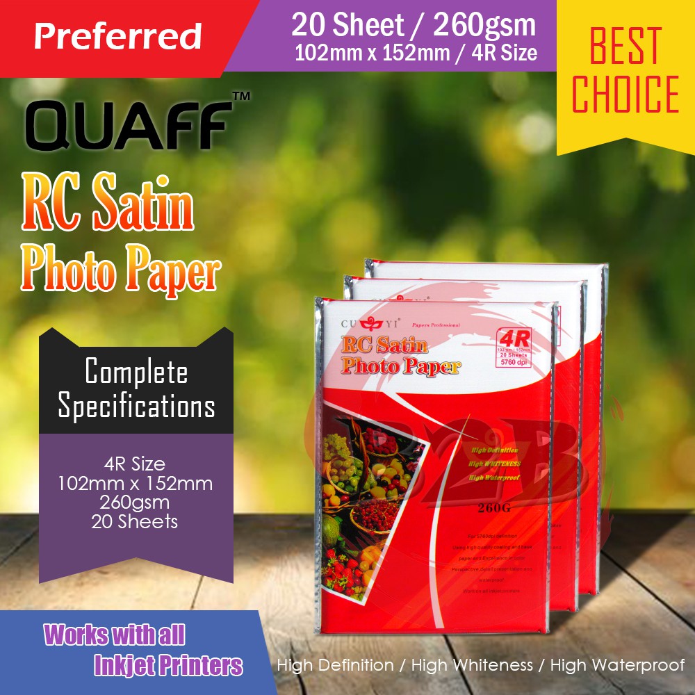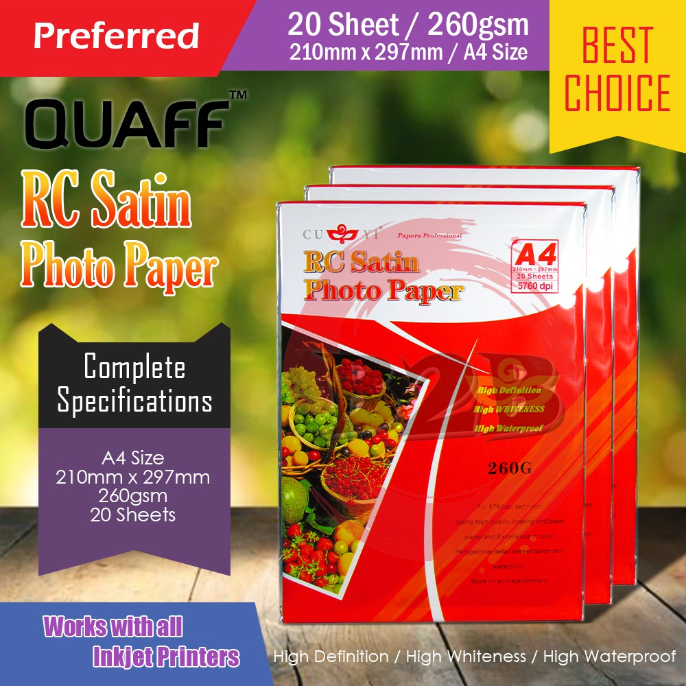 Cuyi RC Satin Photo Paper A4 5R 4R 3R 260gsm