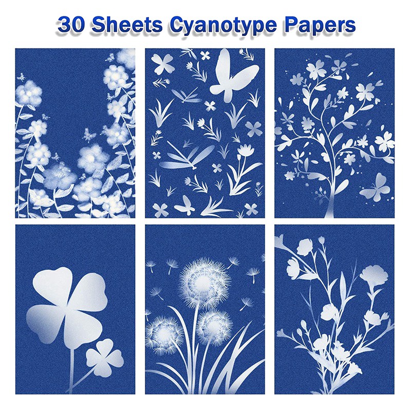 Cyanotype Paper, 30 Pcs A5 Sun Print Paper Kit, High Sensitivity Sun Print Nature Printing Paper Solar Drawing Pape