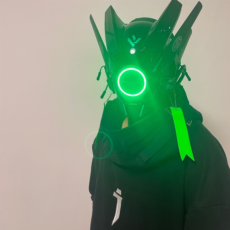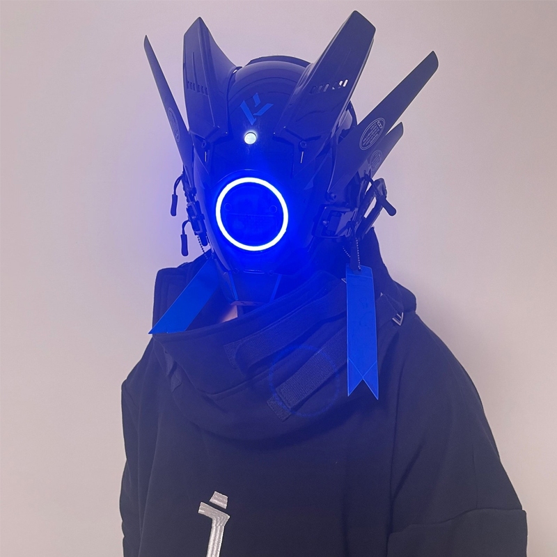 Cyberpunk Mask LED Cosplay mask SCI-FI Helmet Party Toys Techwear mask, Halloween Cosplay Costume Accessory with LED Light, Futuristic Mask