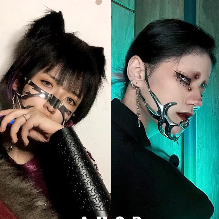 Cyberpunk Metal Masks Mechanical Style Cool Mask Nightclub Party Facial Ornament Mask for Men Women