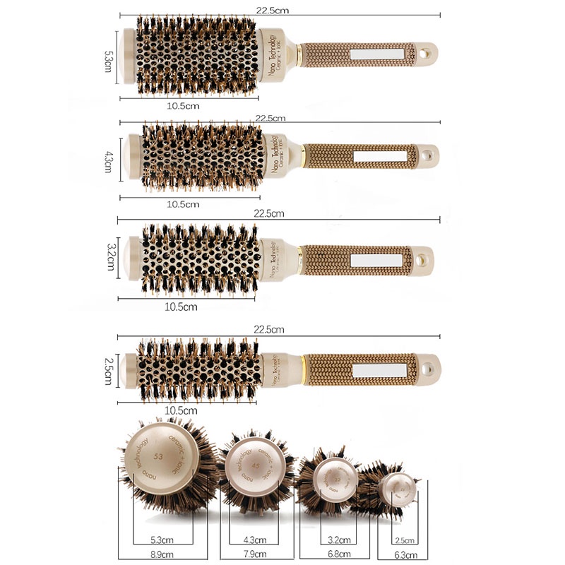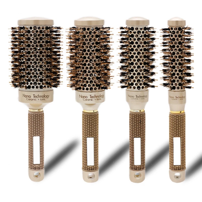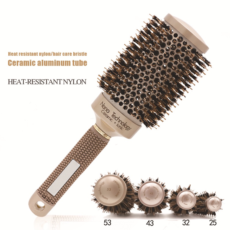 Cylinder Curling Comb Professional Thermal Ceramic Ionic Round Barrel Hair Brush Comb With Boar Bristle Hairdressing Com