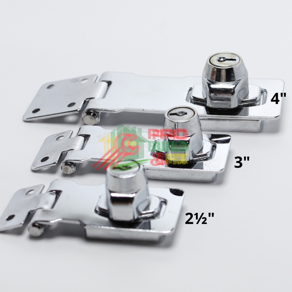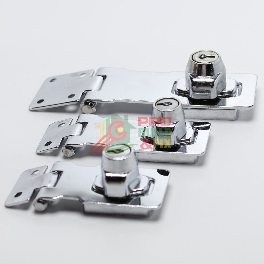 Cylinder Hasp Lock 2-1/2" / 3" / 4" Keyed Hasp Locks Stainless Steel Chrome Plated Hasp Lock
