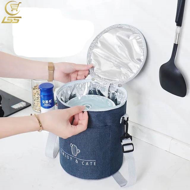 Cylindrical Round Lunch Bag Portable & Large Capacity Insulation Thermal Bag Waterproof Lunch Bag