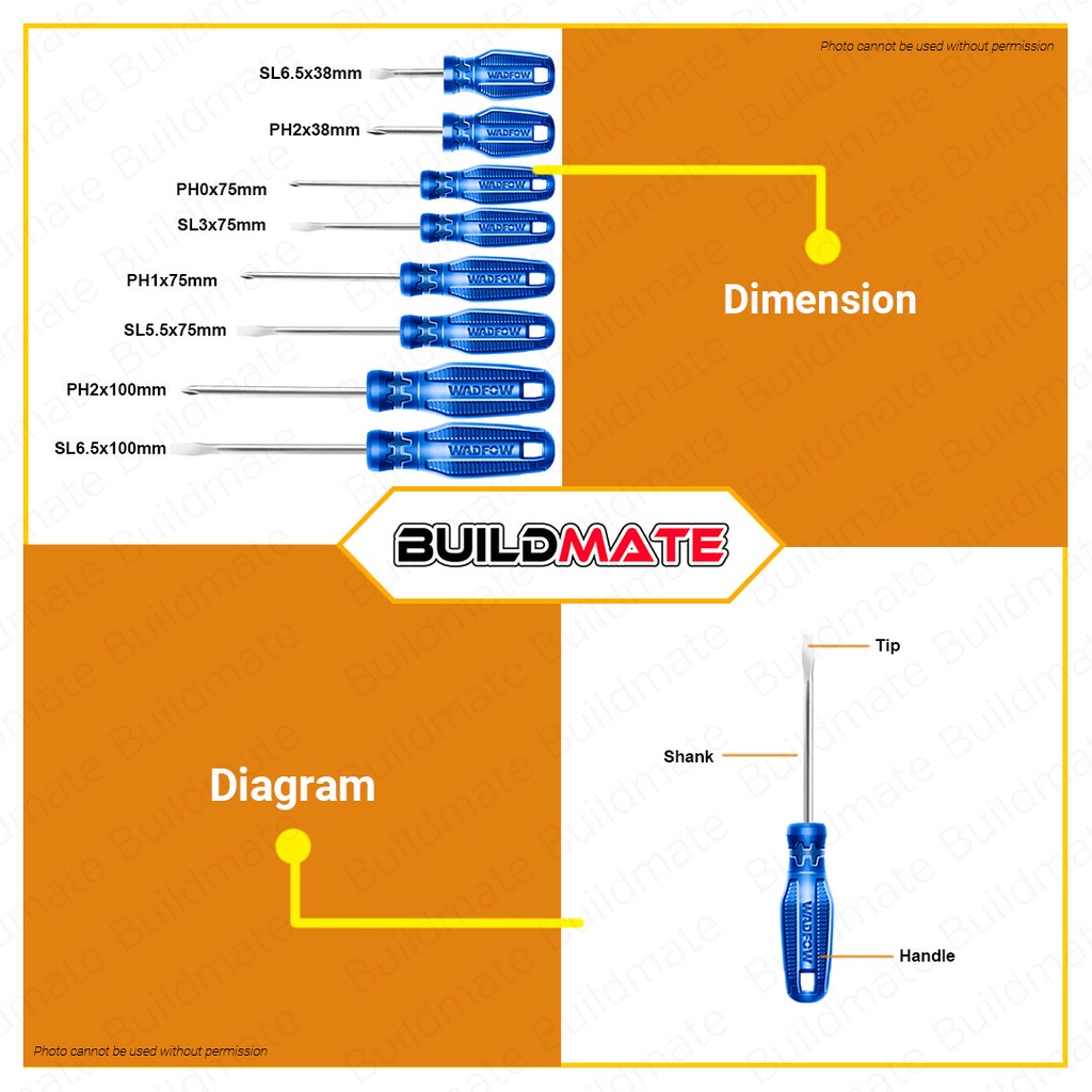 Buildmate x WADFOW 8PCS Screwdriver Set Flat & Philip Screwdriver Repair Tool Kit Set WSS2408 • WHT