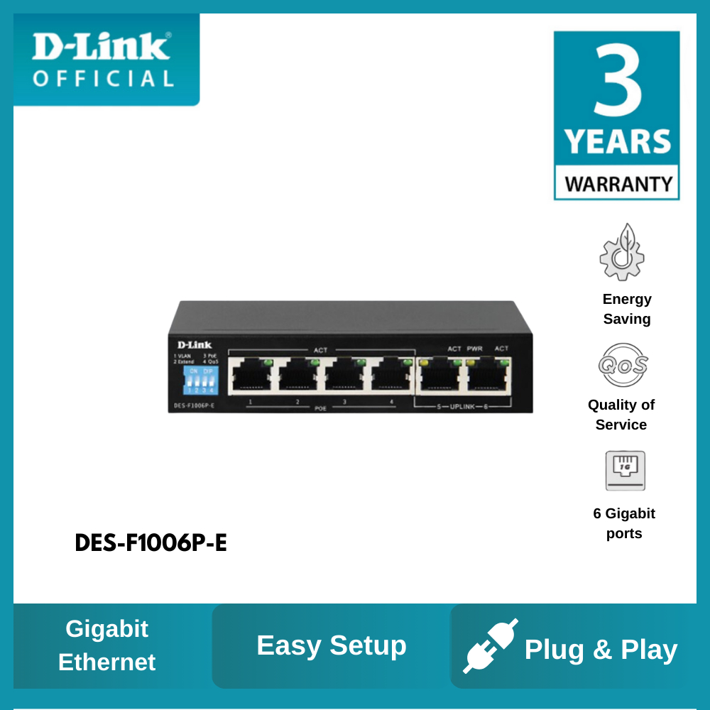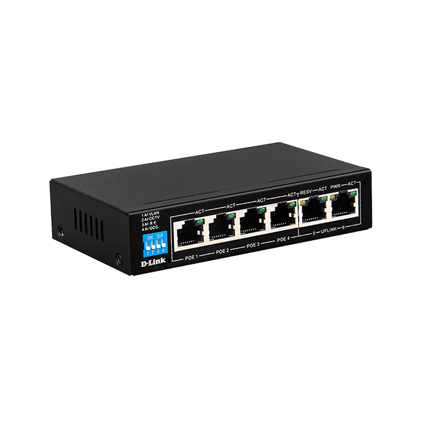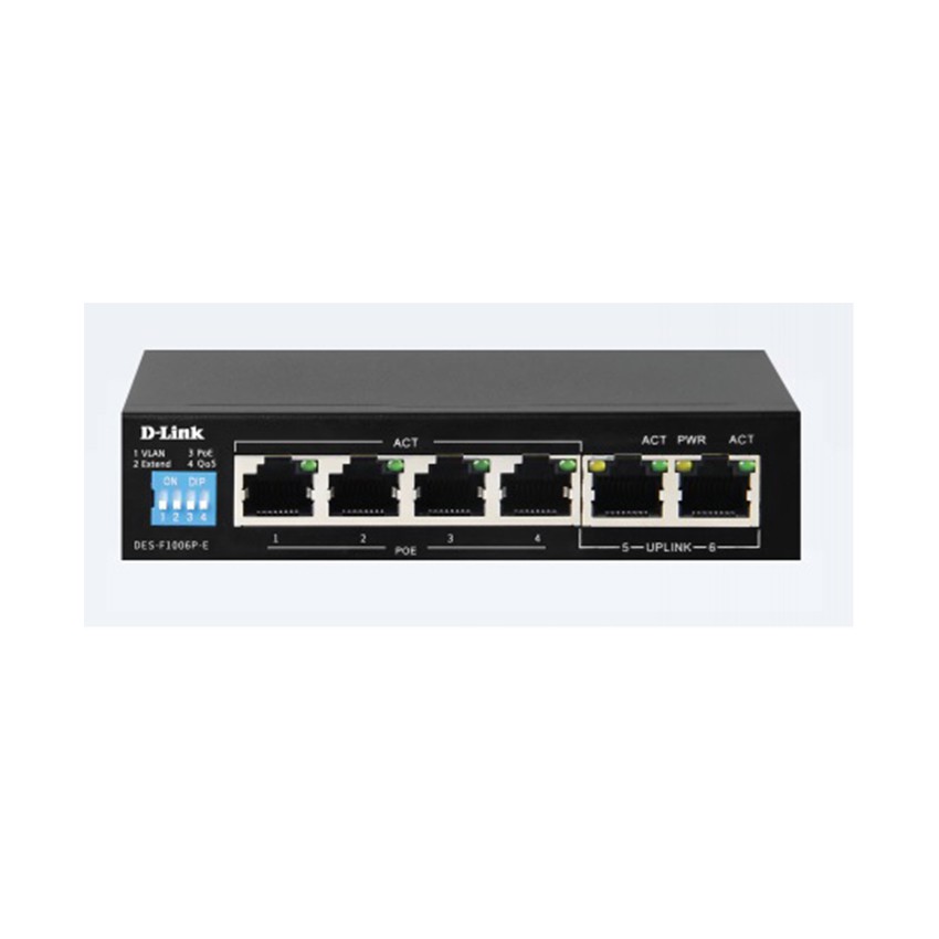 D-Link DES-F1006P-E 250M 6-Port network switch with 4 PoE ports and 2 Uplink Ports PoE 60W