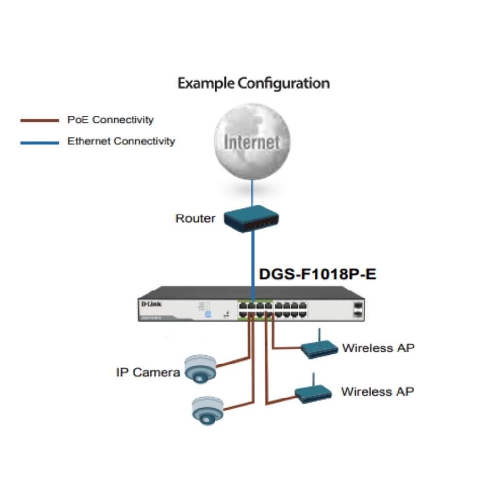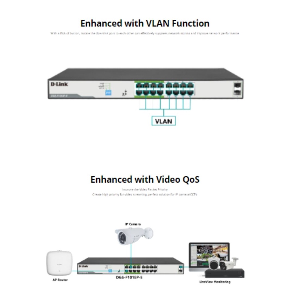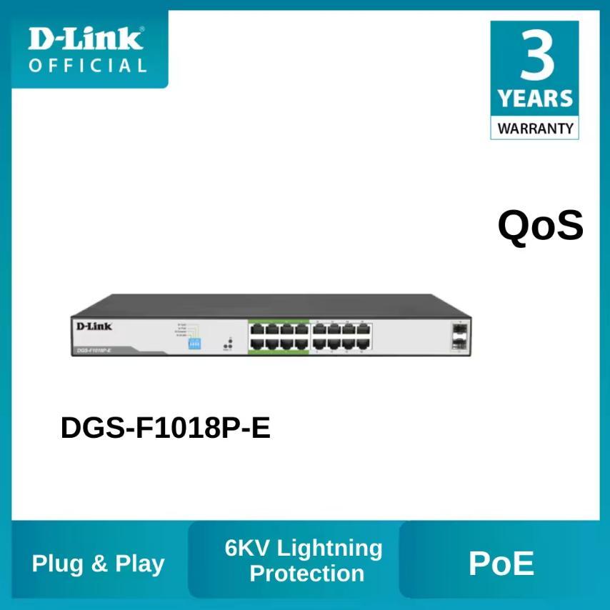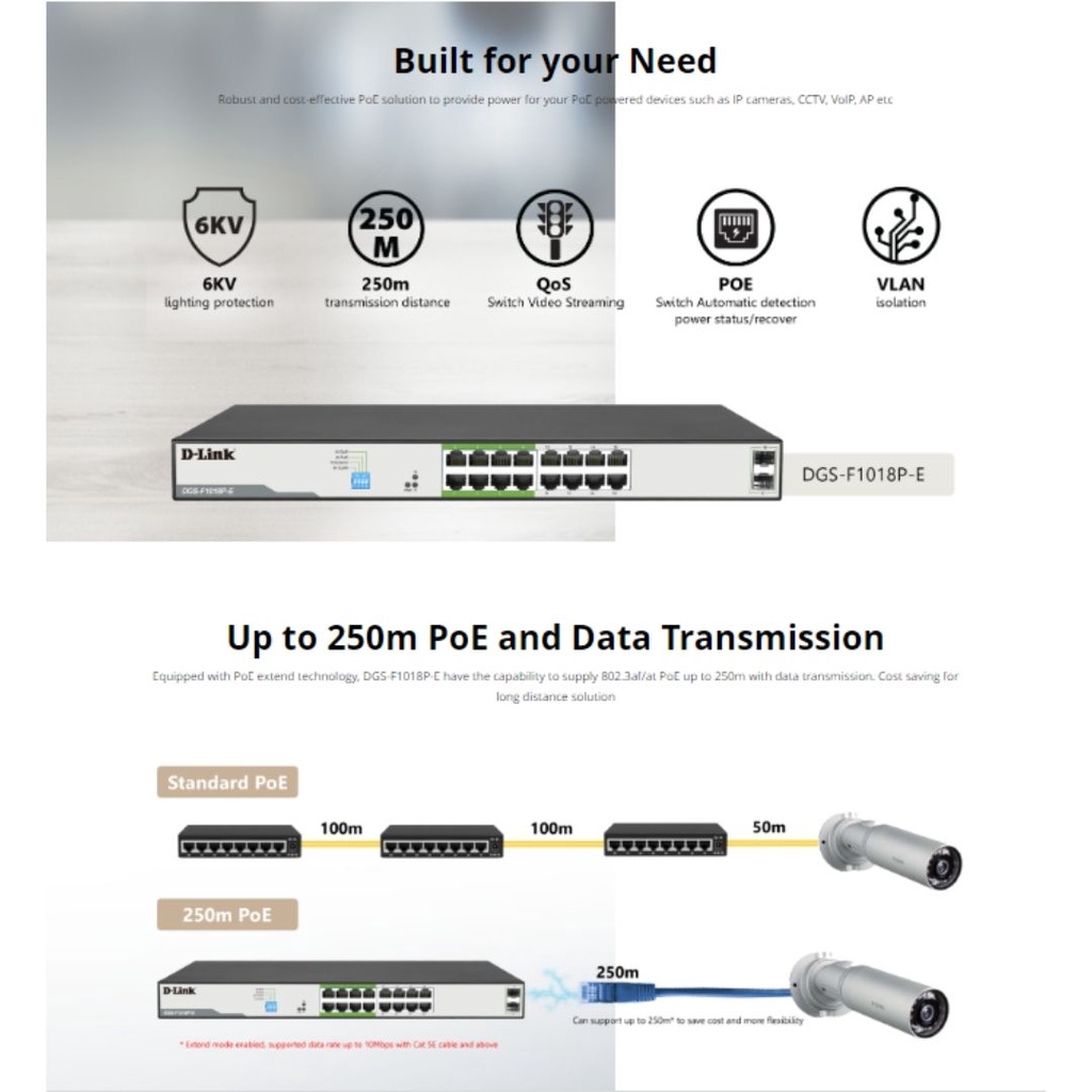 D-Link DGS-F1018P-E 250M 18Port Network Switch with 16 PoE and 2 SFP Ports PoE Budget 150W for CCTV
