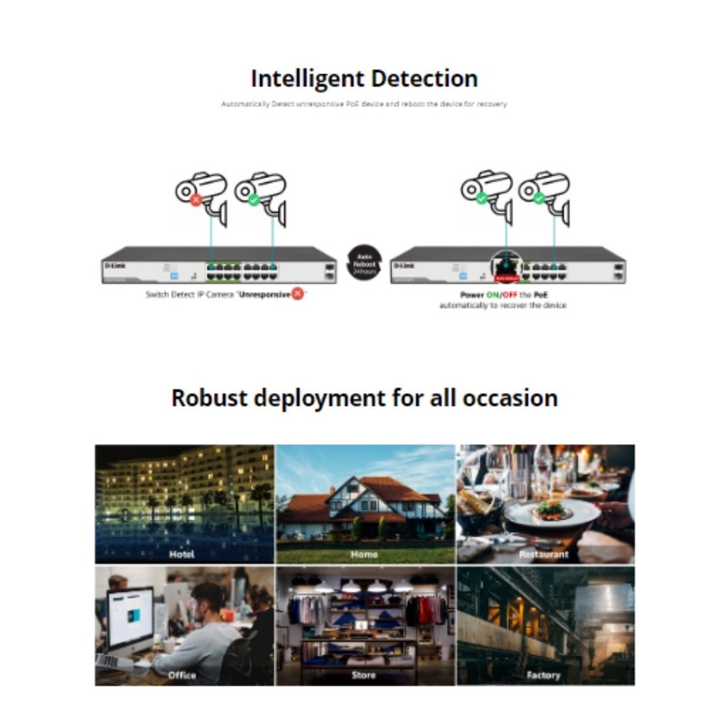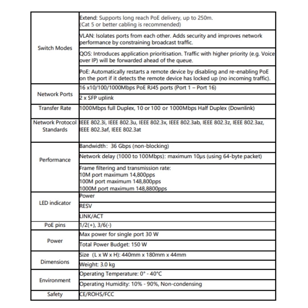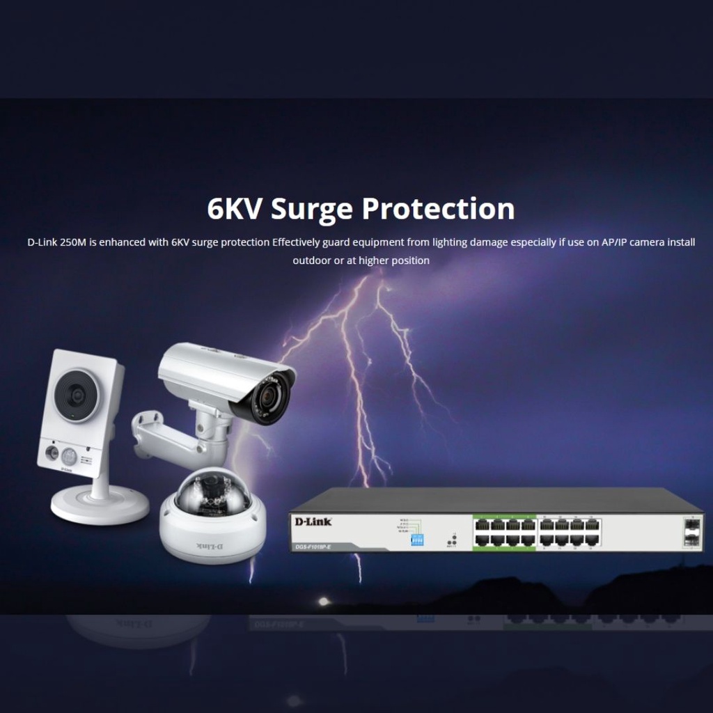 D-Link DGS-F1018P-E 250M 18Port Network Switch with 16 PoE and 2 SFP Ports PoE Budget 150W for CCTV