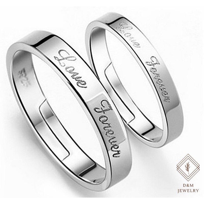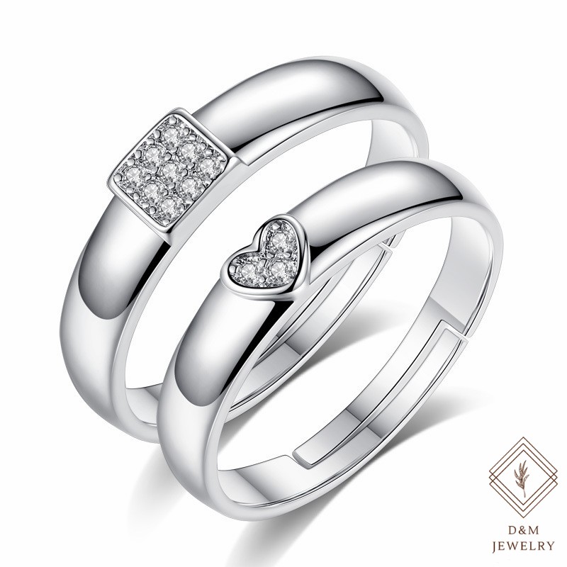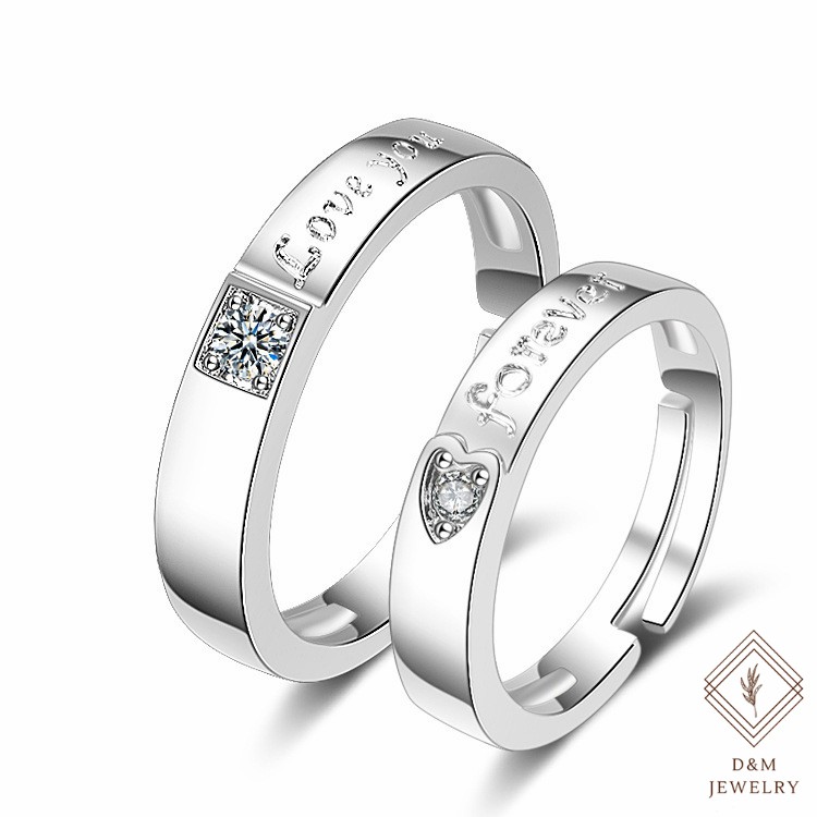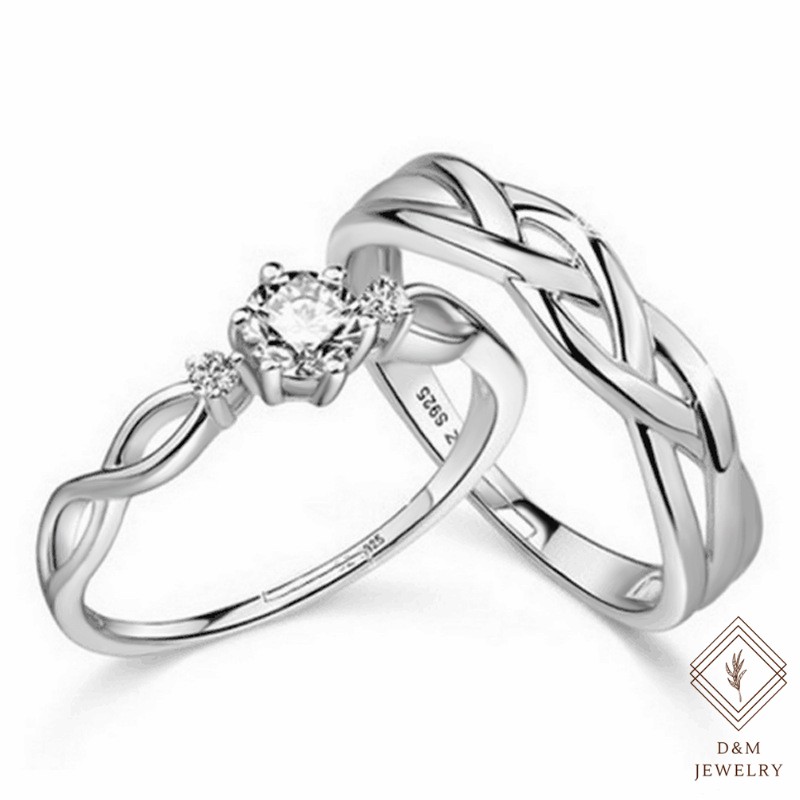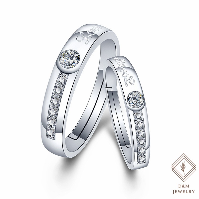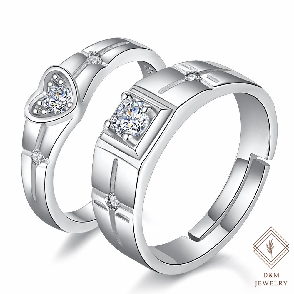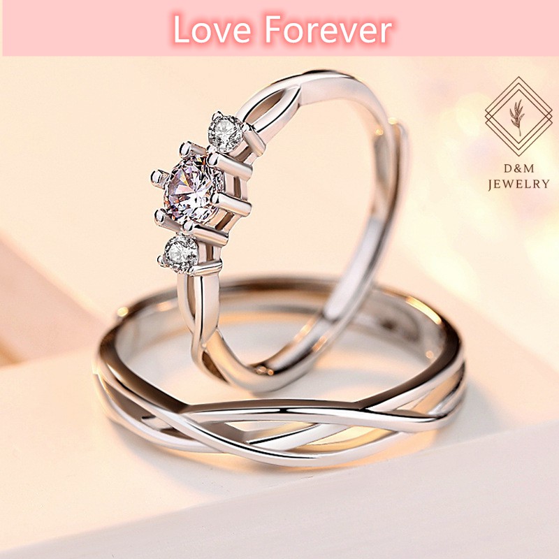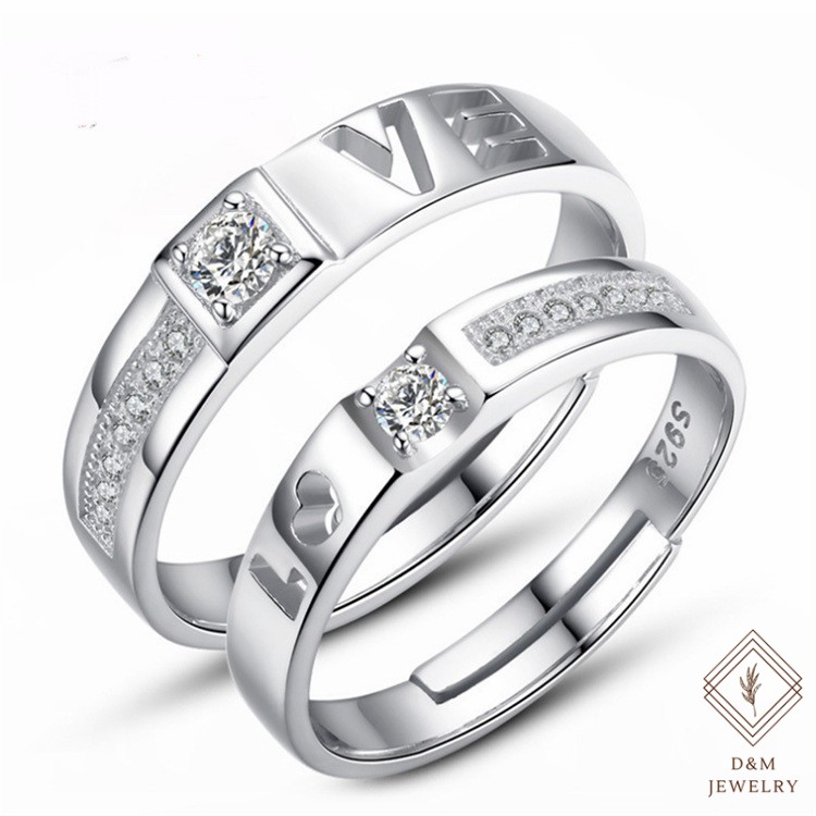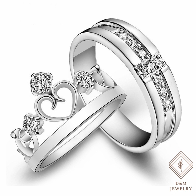 D&M Jewelry 2pcs 925 Silver Couple Ring Crystal Diamond Couple Wedding Adjustable Rings W/Free box