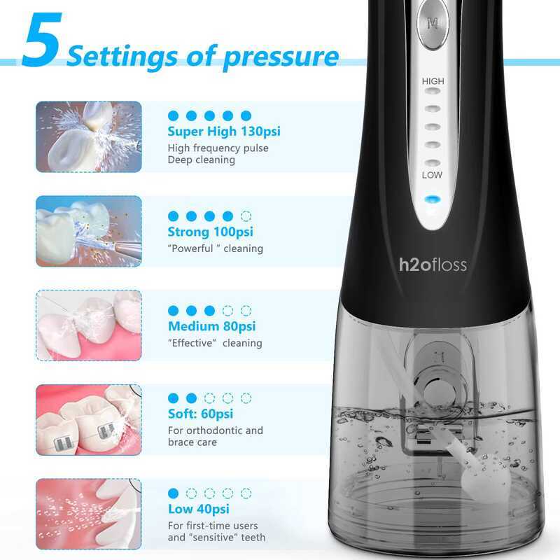 H2ofloss Powerful Oral Irrigator with 6 Nozzles Water Dental Flosser for Household