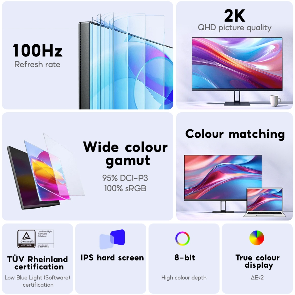 【Global Version】Xiaomi Monitor A27Qi 2K QHD Picture Quality IPS Hard Screen 100Hz Refresh Rate