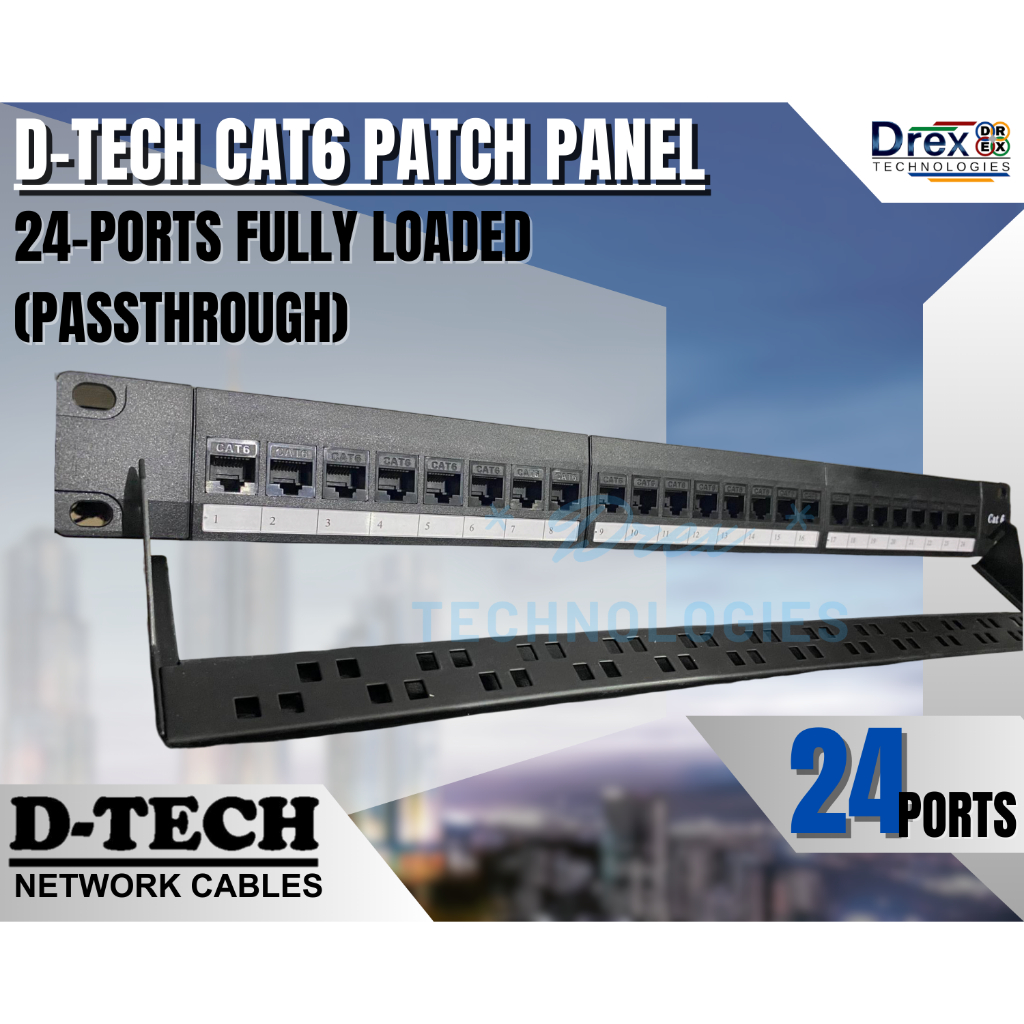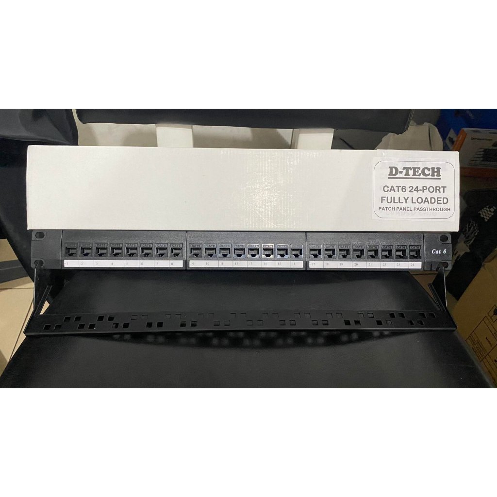 D-TECH 24 Ports Patch Panel Cat6 Fully Loaded 1Ru (Passthrough)