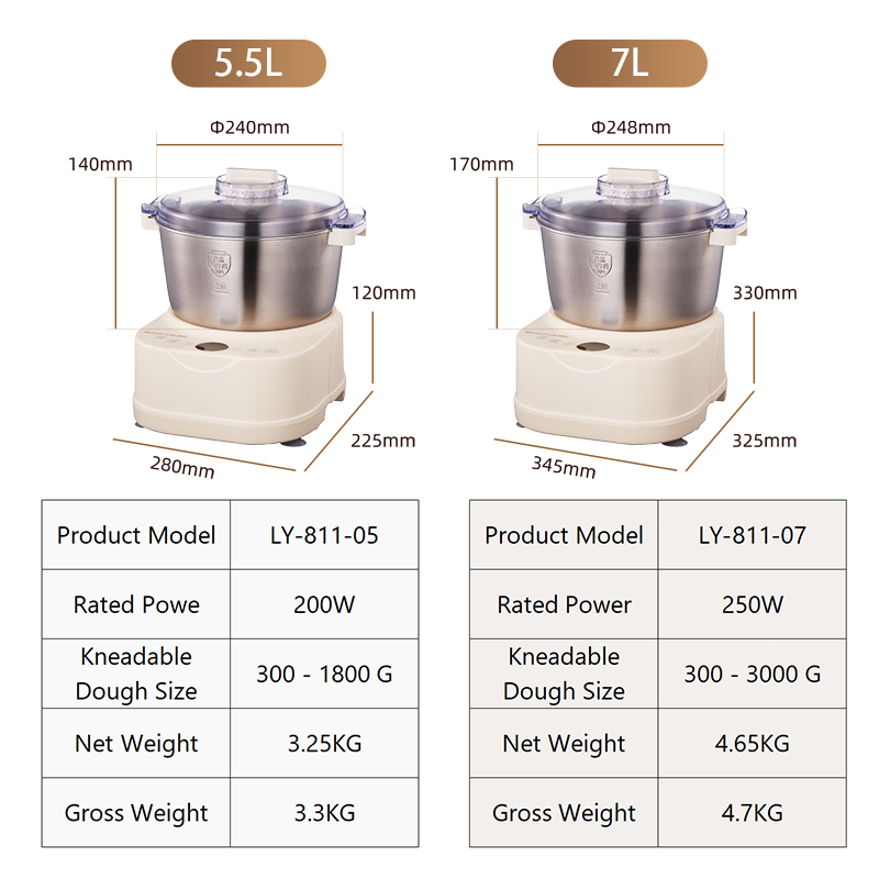 SUNATUR 5L/7L Electric Dough Mixer,250W DC Motor,Stainless Steel Bowl,Timed Fermentation,All-in-One