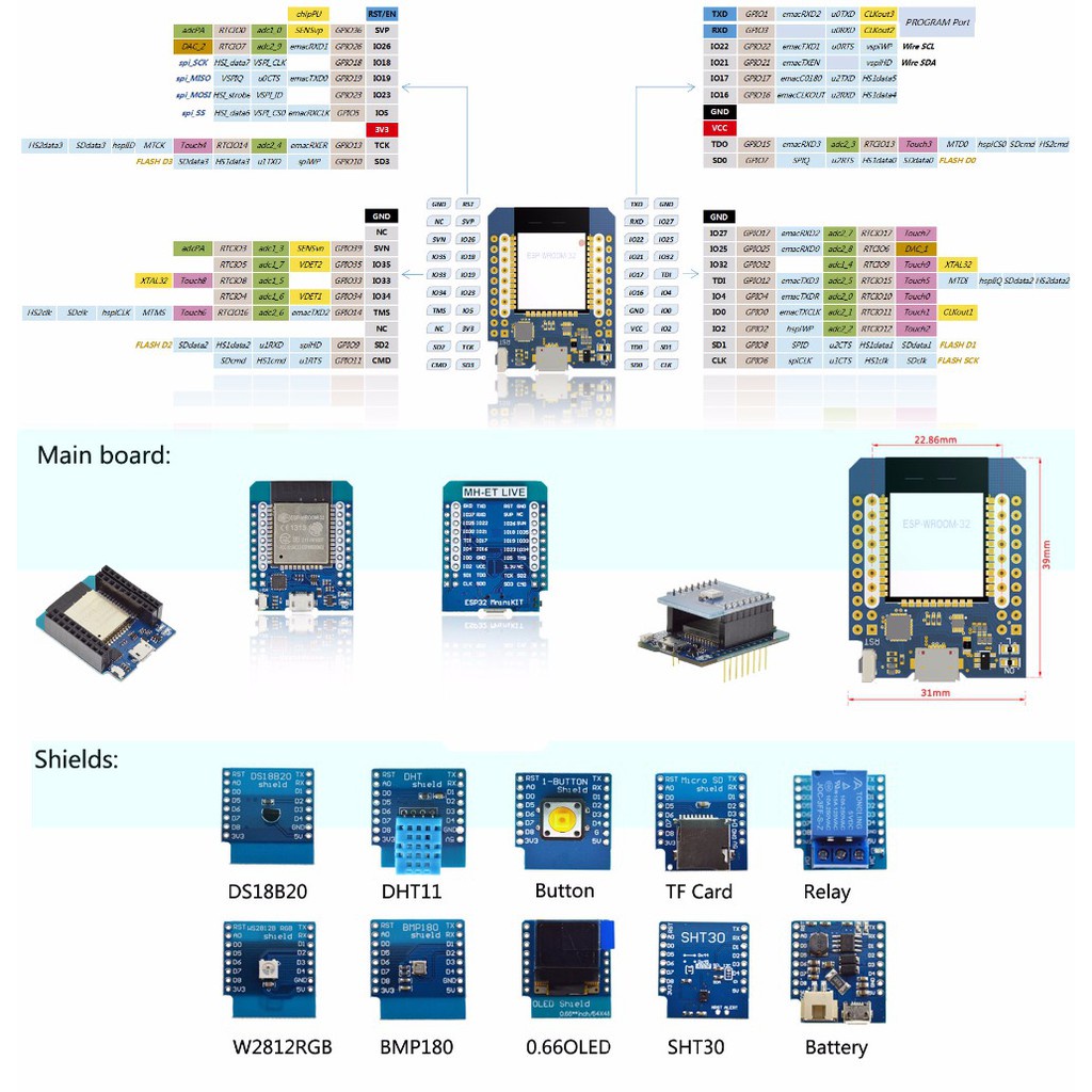 D1 mini ESP32 ESP-32 WiFi+Bluetooth-compatible Internet of Things development board based ESP8266 Fully functional