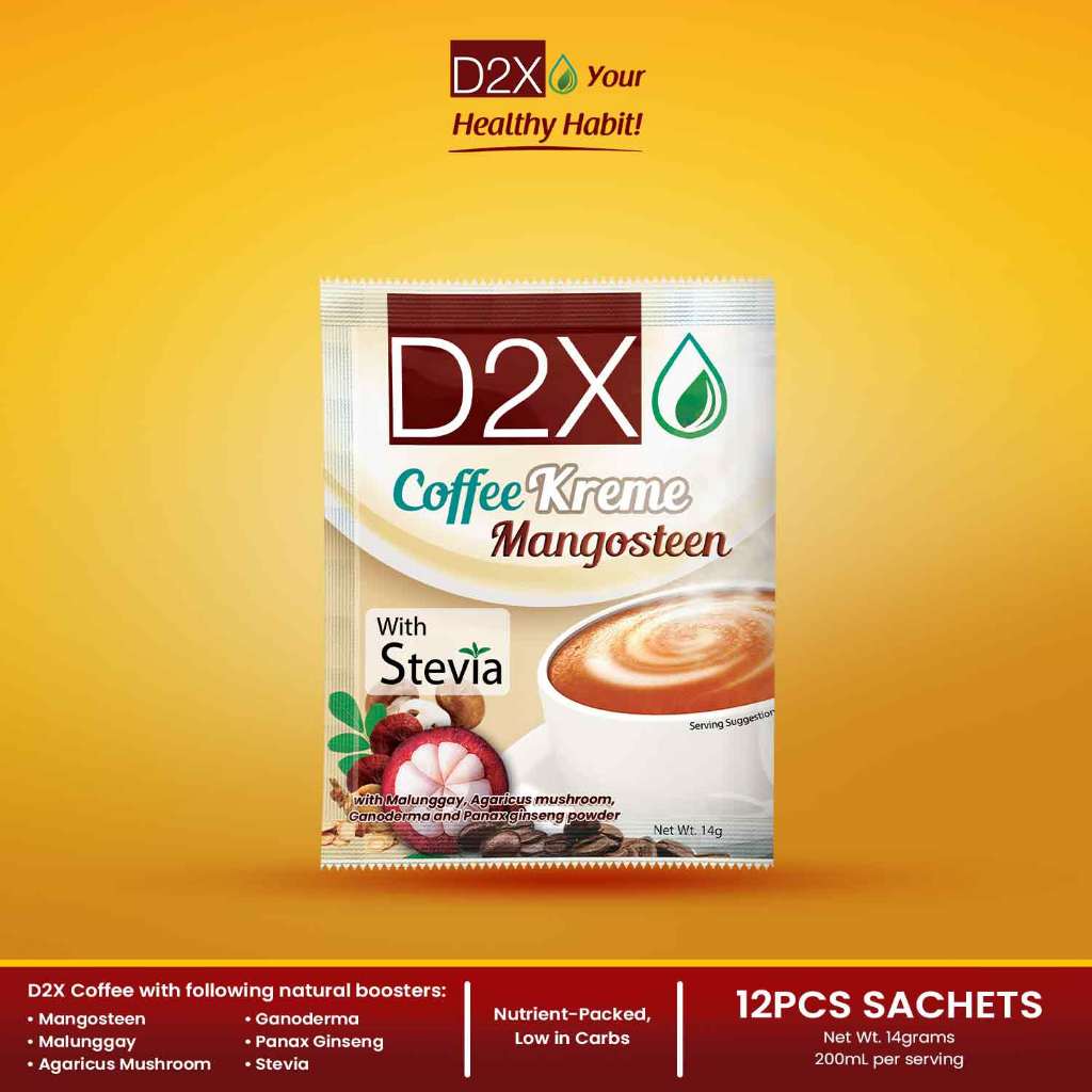 D2X Coffee Kreme Mangosteen Sweetened with Stevia (14g x 12 sachets)