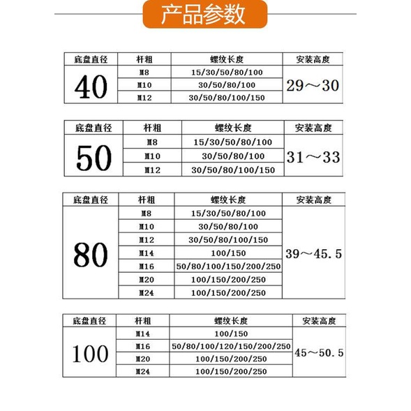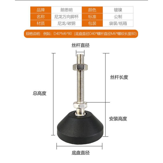 D40/50/60 nylon universal foot Cup adjustable foot cabinet foot screws adjustable support bed leg M8m10m16