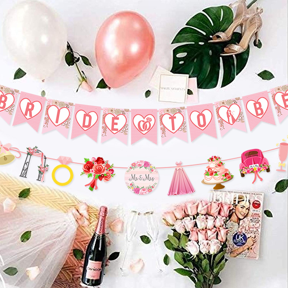D56 Banners | Pink White BRIDE TO BE Letter Hanging Garland Banner Bridal Shower Bachelorette Party