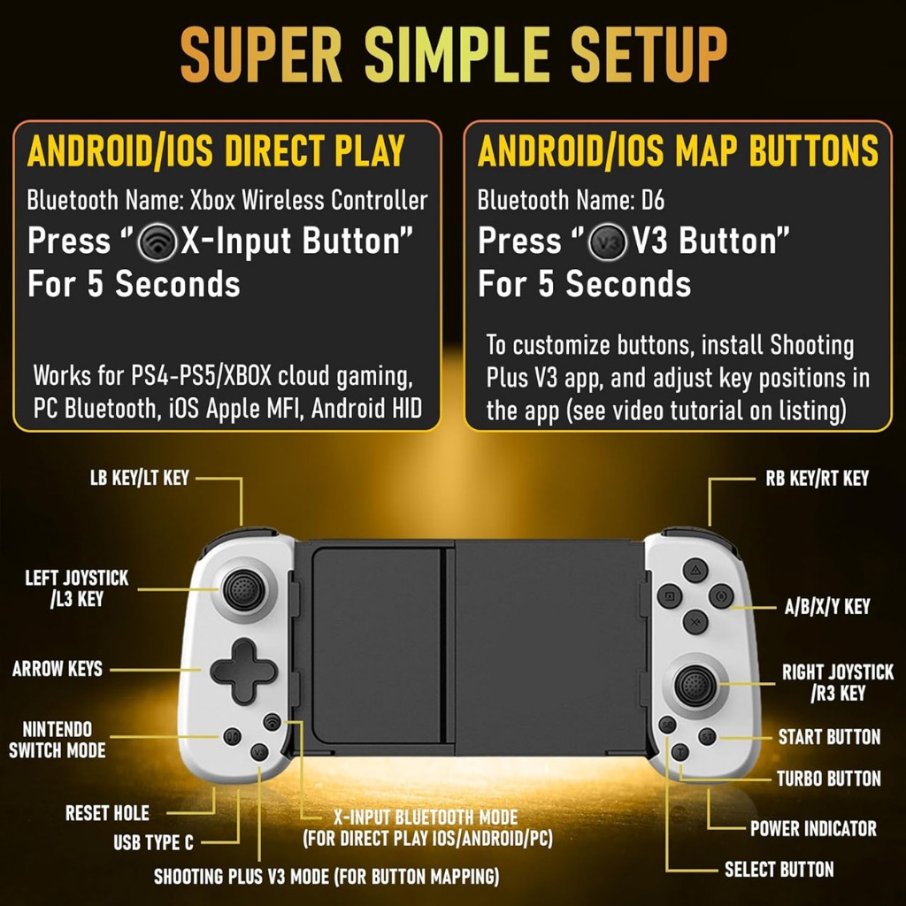 D6 Wireless BT 5.0 Stretchable Gamepad For Mobile Phone Android IOS Devices Retractable Joystick