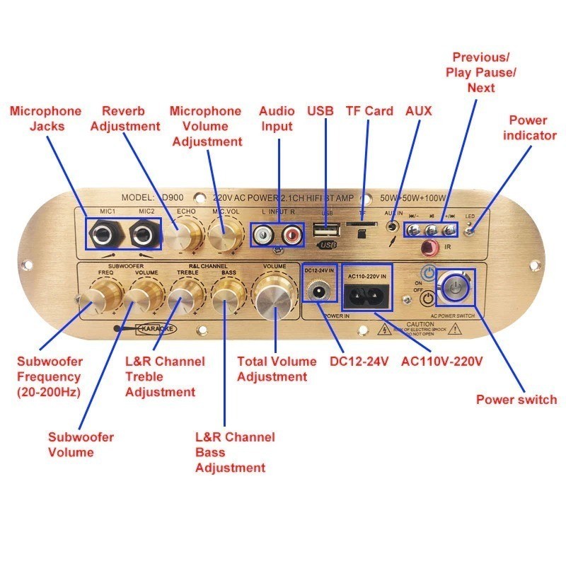 D900 Bluetooth Digital Amplifier Board 2.1 Channel US Imported Chip High And Low Pitch Super Heavy Subwoofer High Power Dual Microphone Karaoke Amplifier Reverberation Adjustment