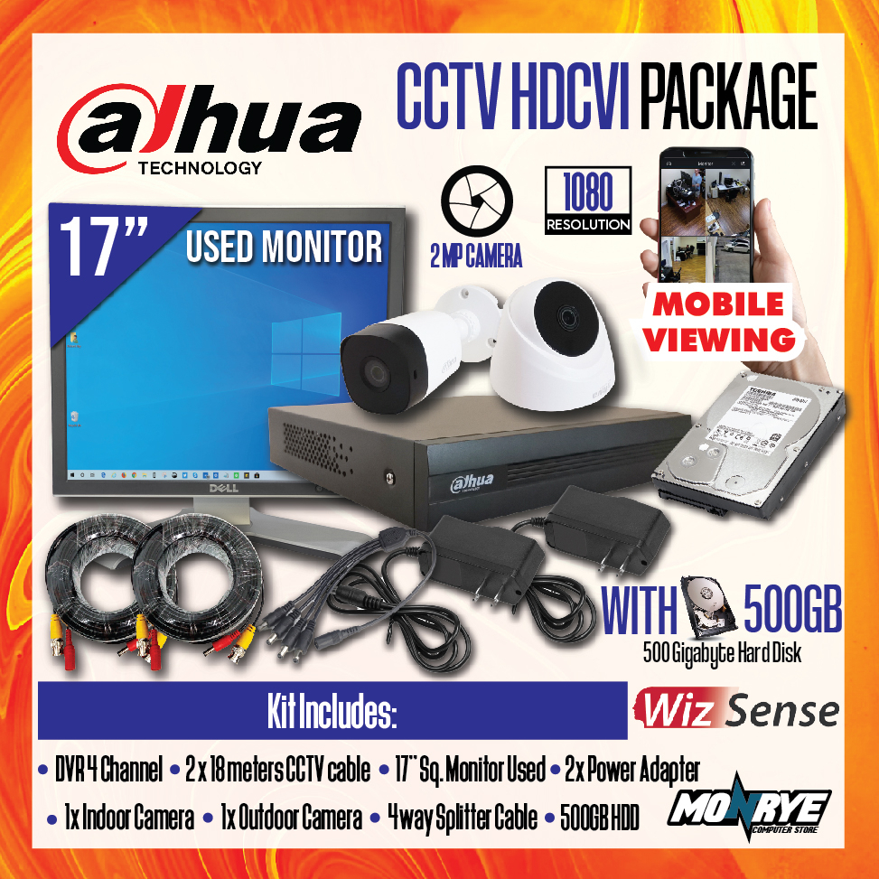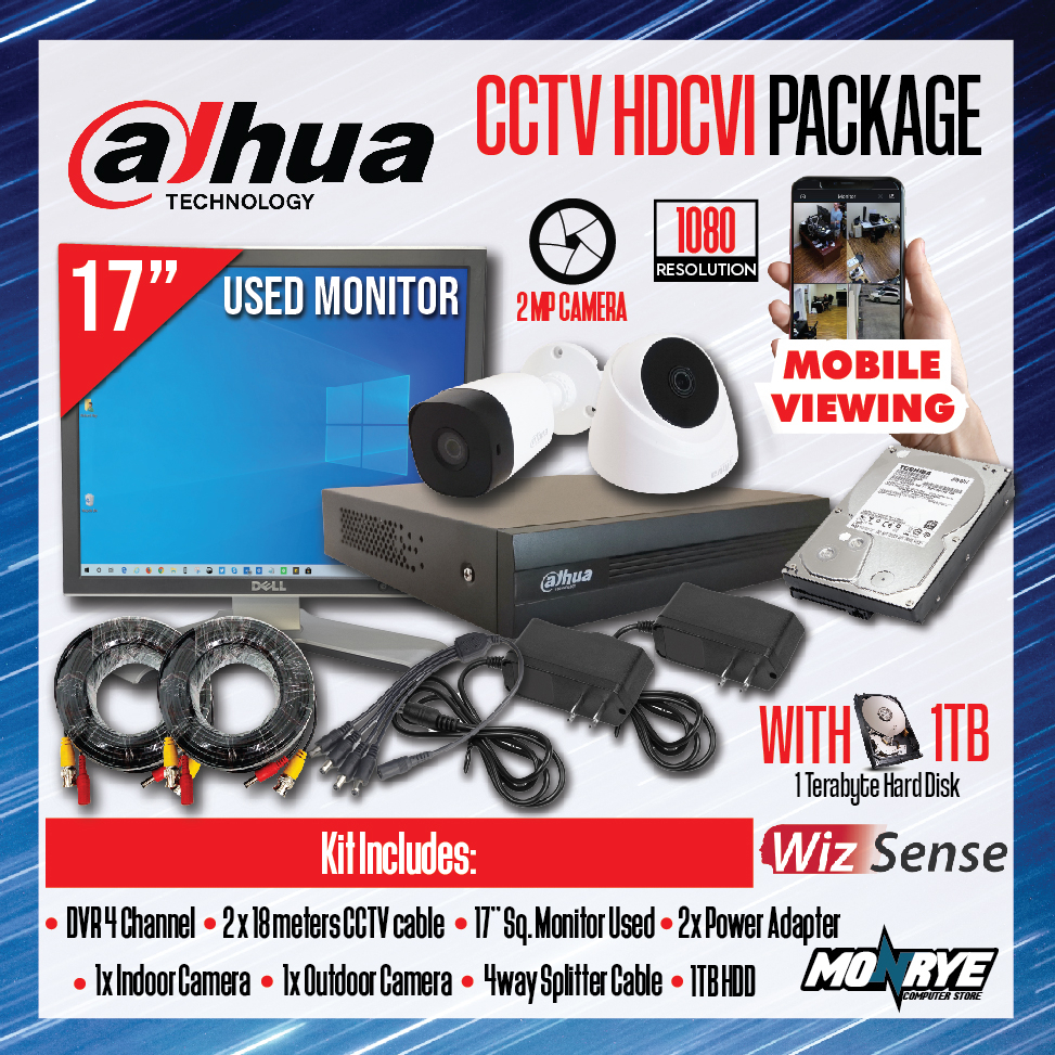 DAHUA CCTV HDCVI Complete Set / BRAND NEW DVR 4 Channel with HDD / 2 Camera / 17 Inches Monitor
