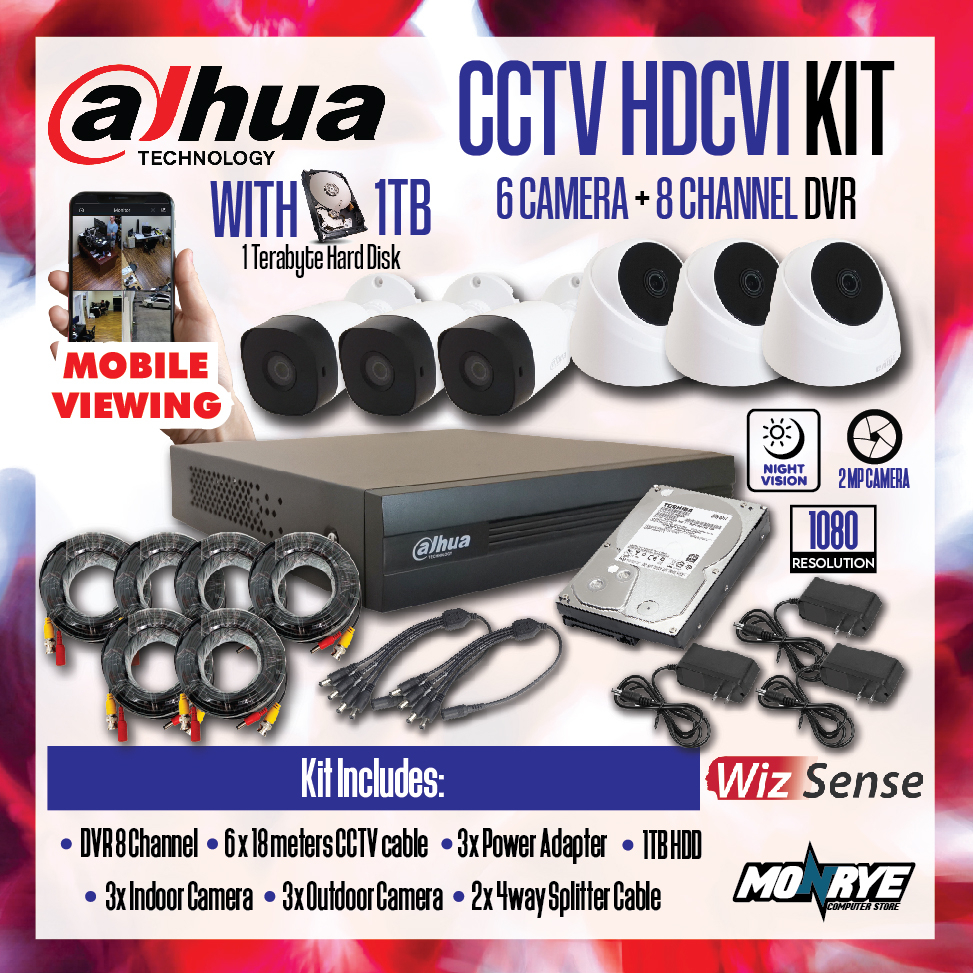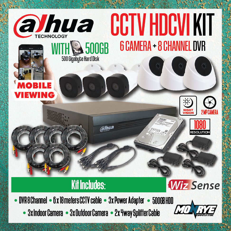 DAHUA CCTV HDCVI KIT / BRAND NEW DVR 8 Channel with HDD / 6 Camera / CABLES