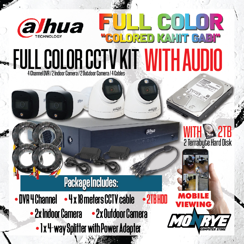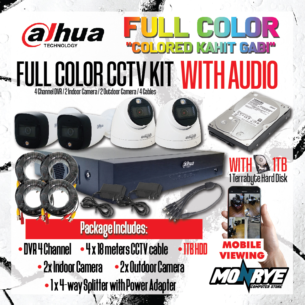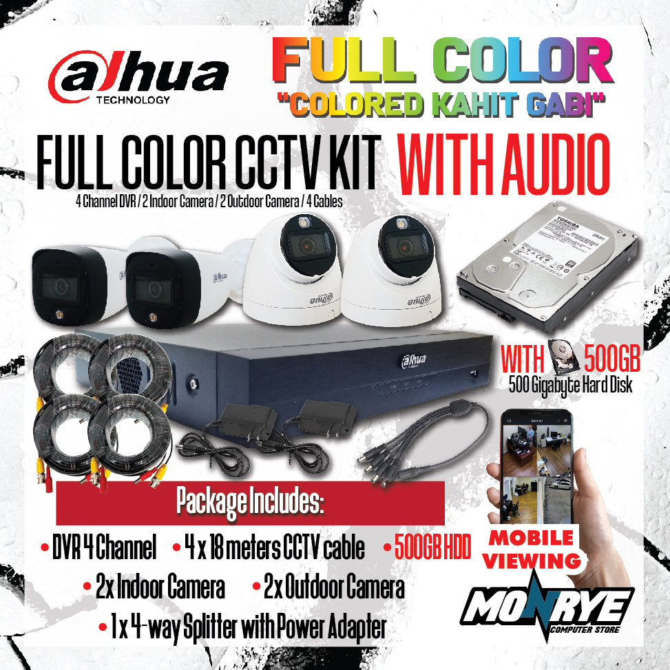 DAHUA FULL COLOR KIT WITH AUDIO / DVR 4 Channel / WITH HARD DISK OPTIONS / CABLES