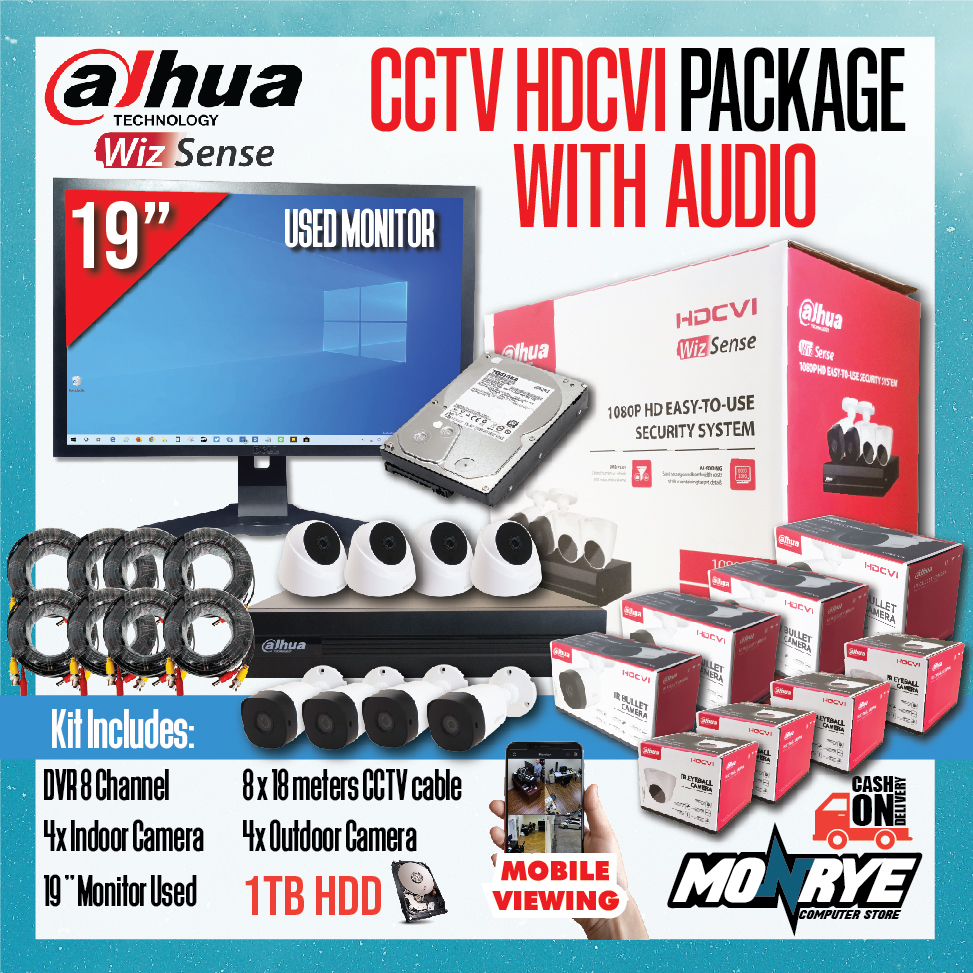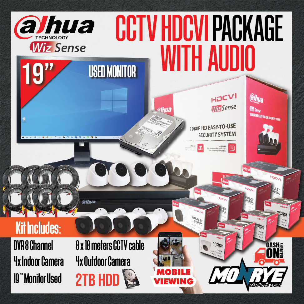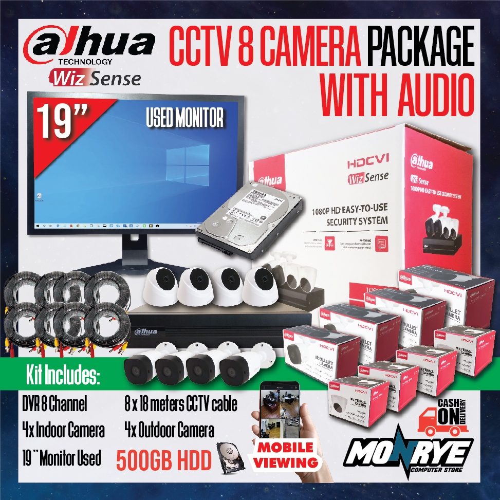 DAHUA PACKAGE WITH AUDIO / DVR 8 Channel / WITH HARD DISK OPTIONS / 8 CAMERA / CABLES / WITH MONITOR