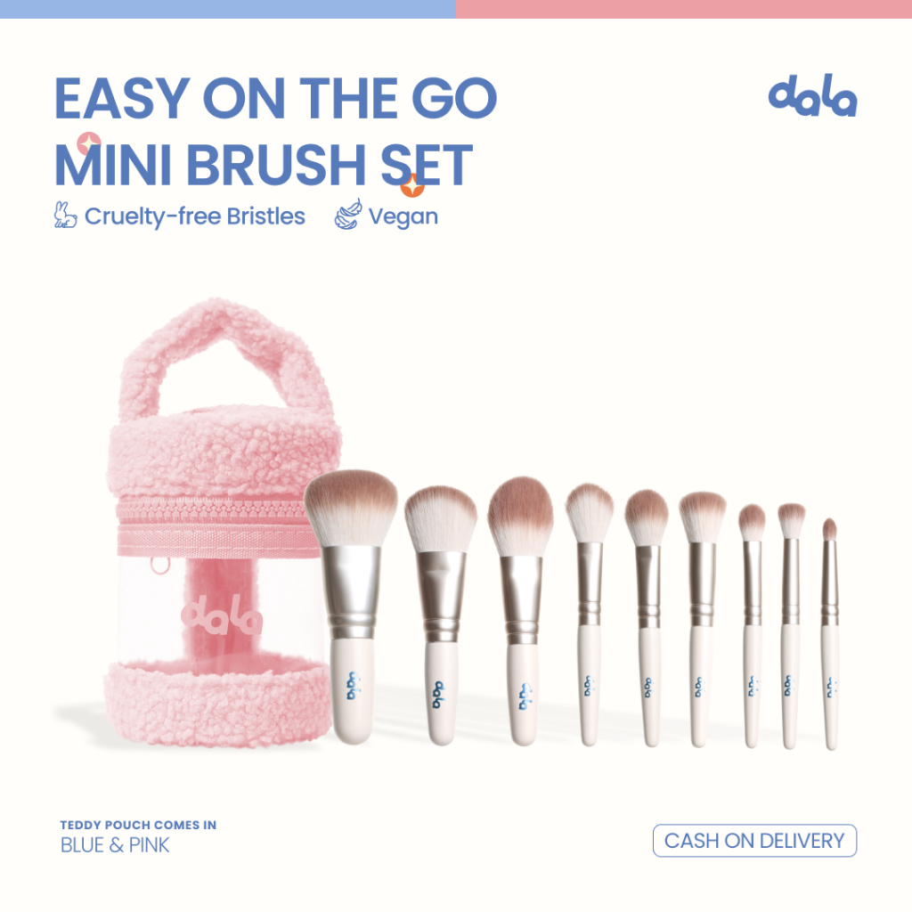 DALA Easy On The Go 9pc Mini Brush Set + Teddy Travel Pouch - Soft Synthetic Bristles Professional
