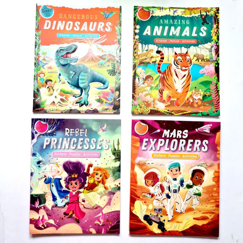 DANGEROUS DINOSAURS , MARS EXPLORER, AMAZING ANIMALS -Activity Books For Kids, Giant Foil Stickers