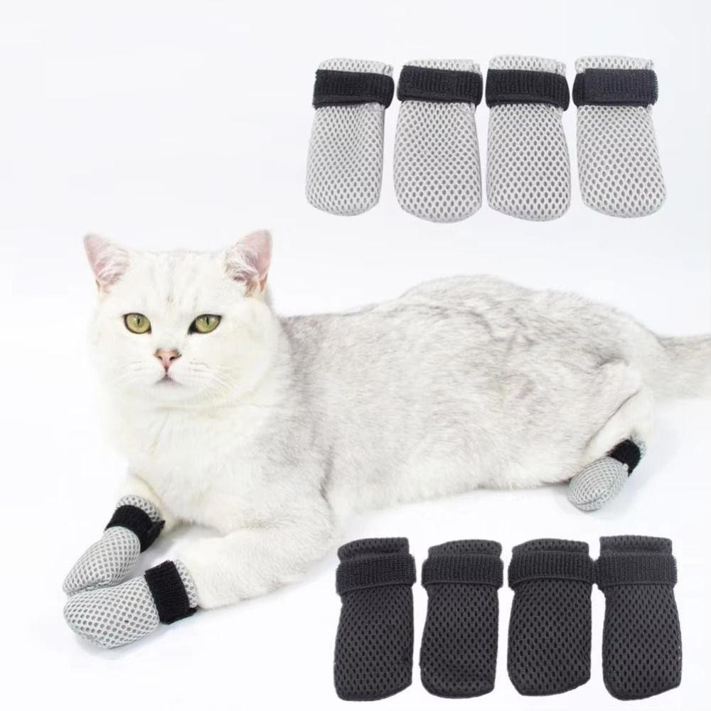 DAPHS 4Pcs/set Cat Socks, Recovery Feet Protector Non-Slip Pet Claw Cap, Pet Supplies Breathable Anti-Scratch Mesh Pet Feet Cover