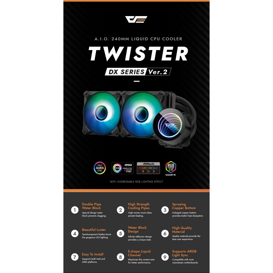 DARKFLASH DX240 V2 TWISTER BLACK ARGB AIO LIQUID CPU COOLER