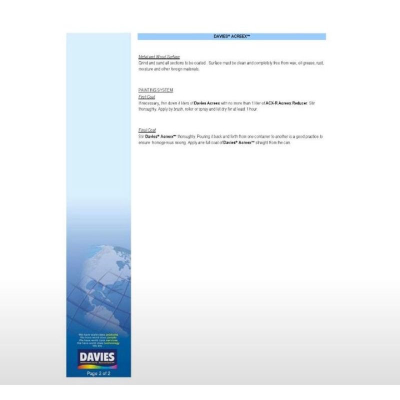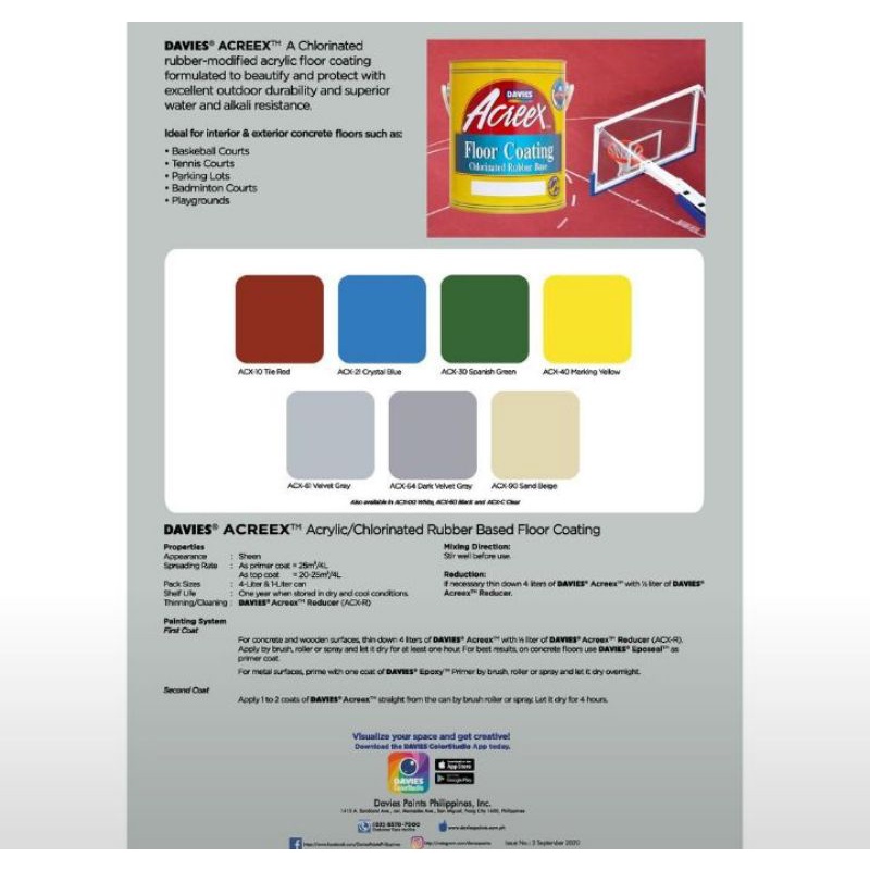 DAVIES ACREEX RUBBERIZED FLOOR COATING CHLORINATED RUBBER BASE, TOPCOAT CLEAR ACREEX REDUCER 1 LITER
