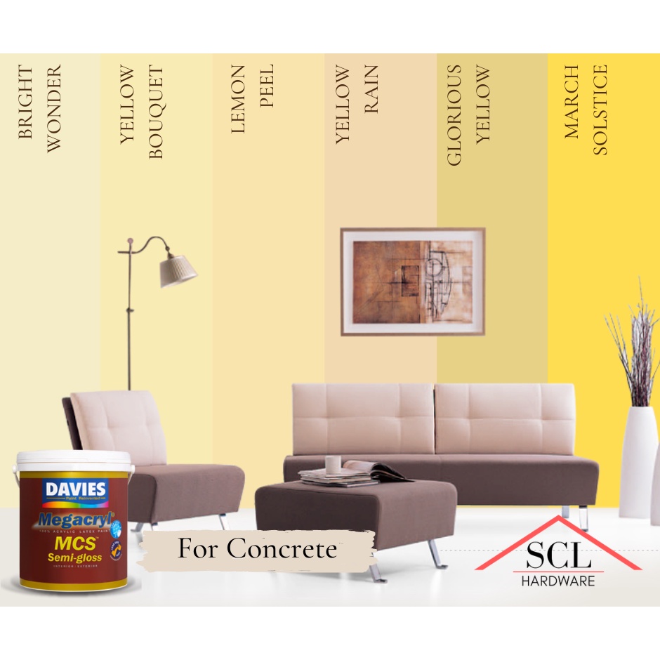 DAVIES Megacryl Semi Gloss YELLOW Shades 4 Liters / Gallon (PASTEL & MIDTONES)