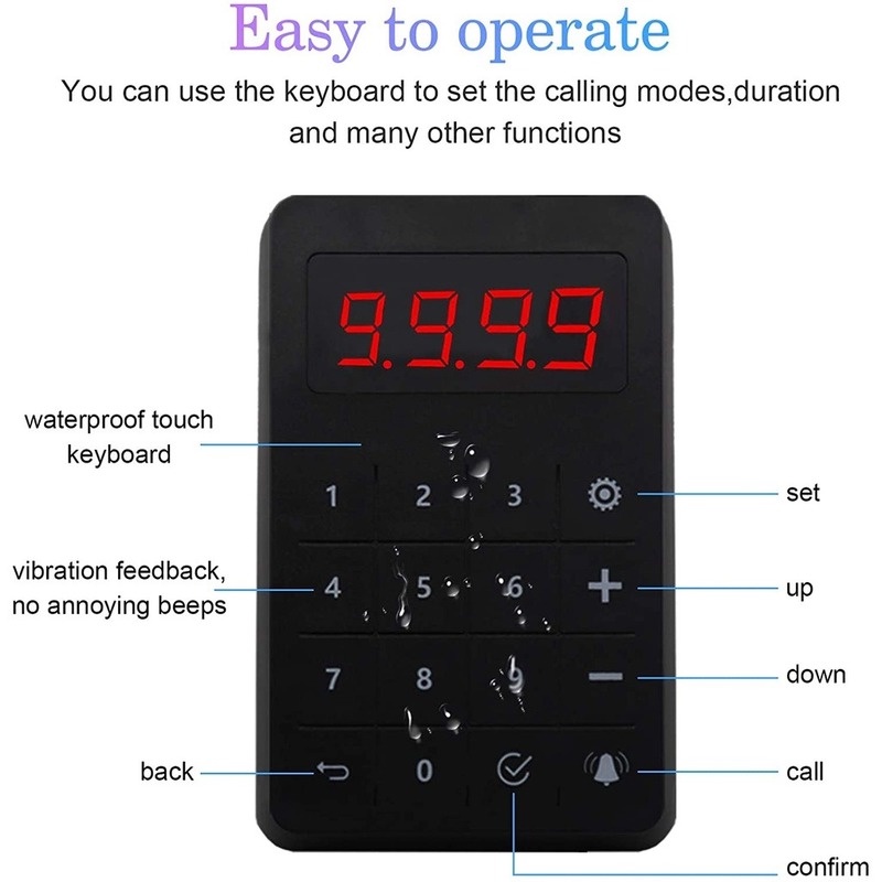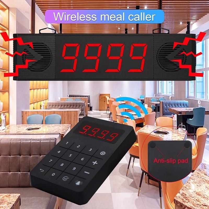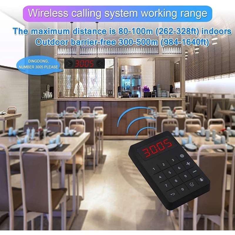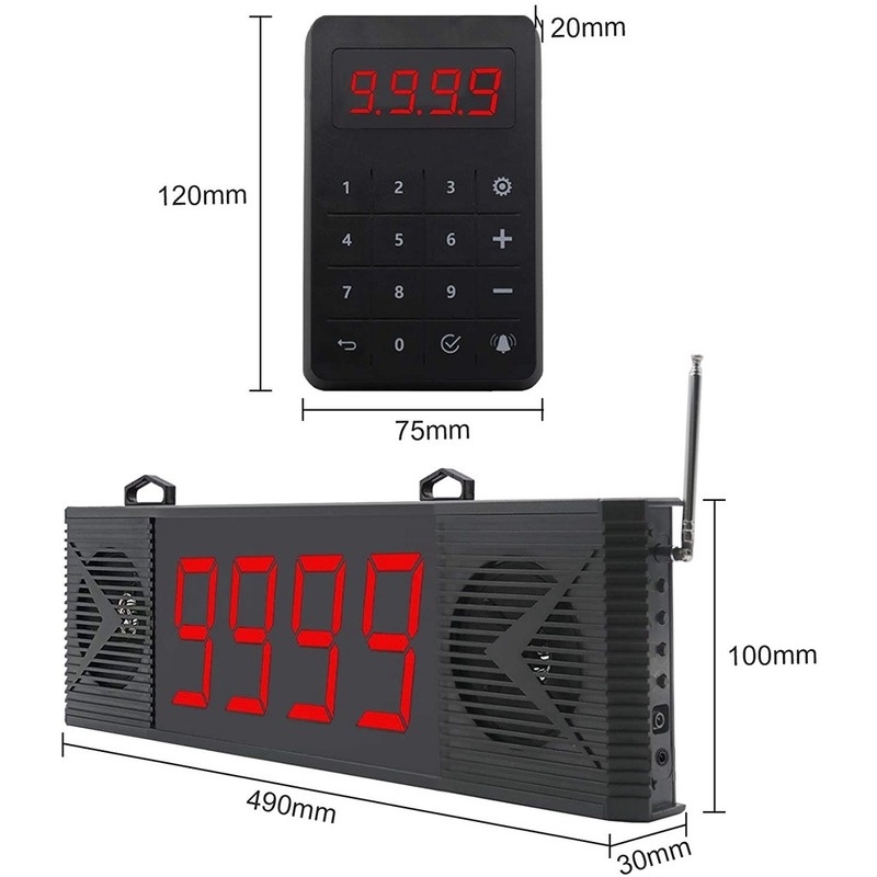 DAYTECH Wireless Queue Calling System Waterproof Touch Keypad Number Take A Number System 4-Digit Double Speaker Voice Broadcast System For Restaurant/Truck/Clinic/Church/Bank CK04