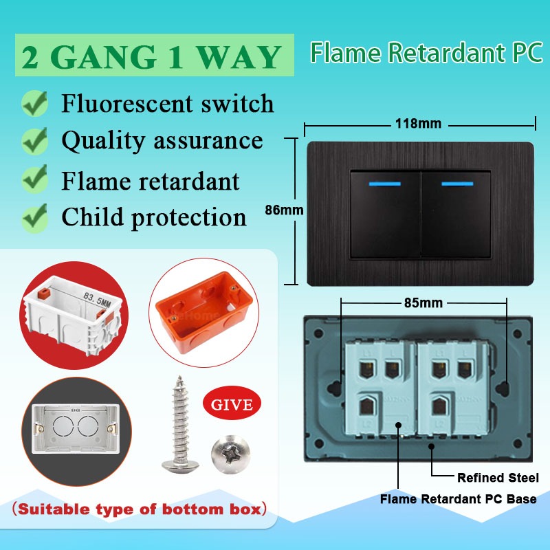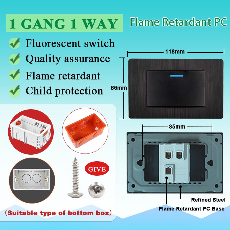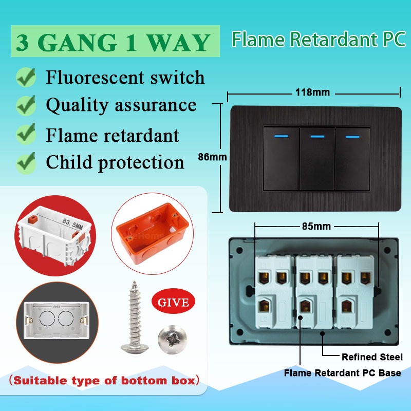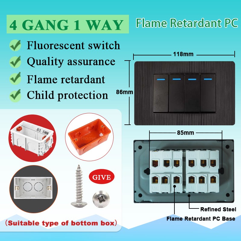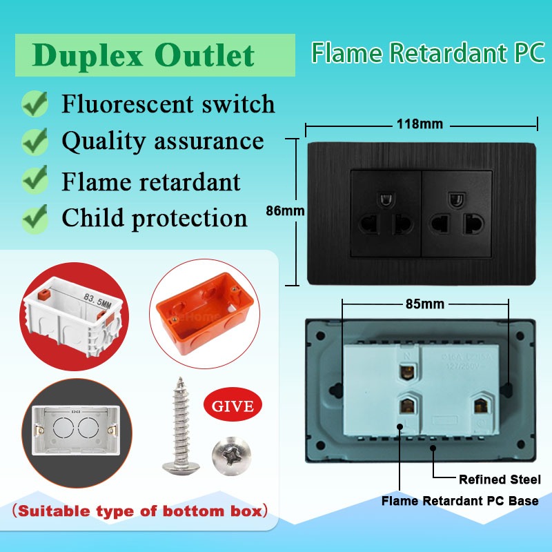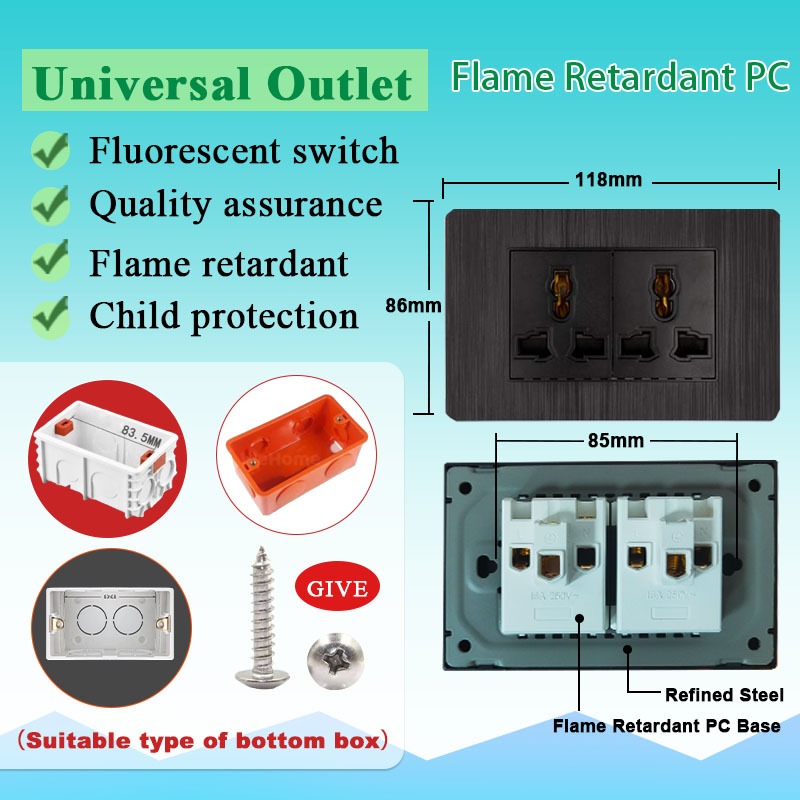 DBODHI Wall Switch Black Series Universal Socket 16A Home Light Switch Wall 1/2/3/4 Gang Light Switch 4/6 Hole Socket With Type-C