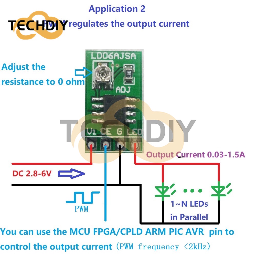 DC 3.3V 3.7V 5V LED Driver 30-1500MA Constant Current Adjustable Module PWM Control Board for USB LED flashlight 18650 Li-ion