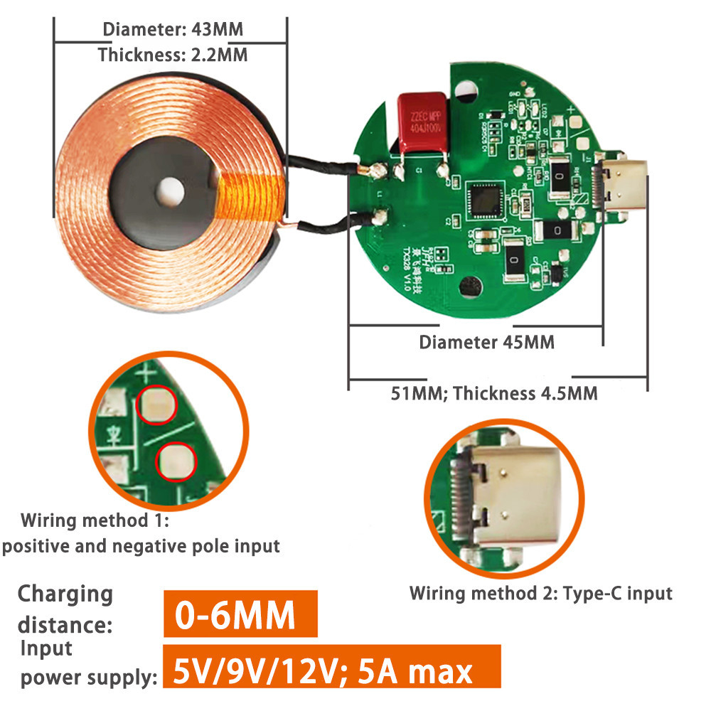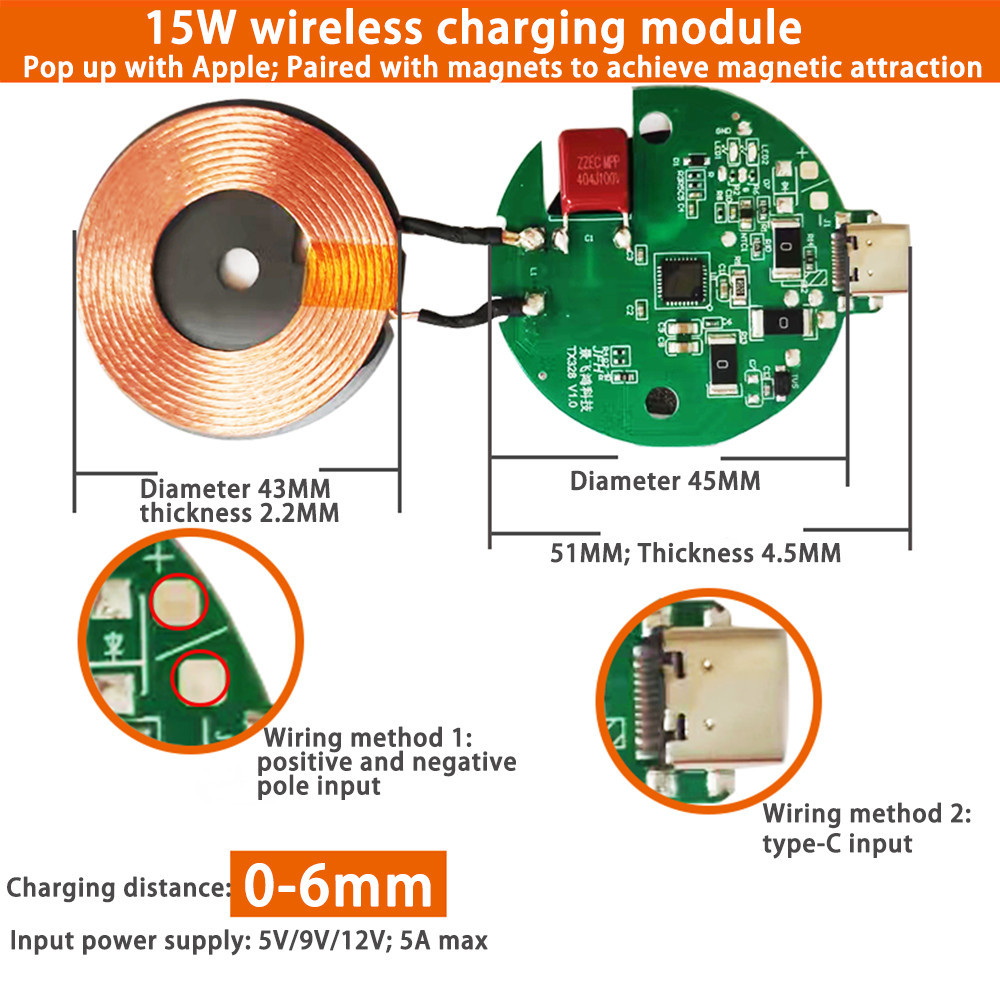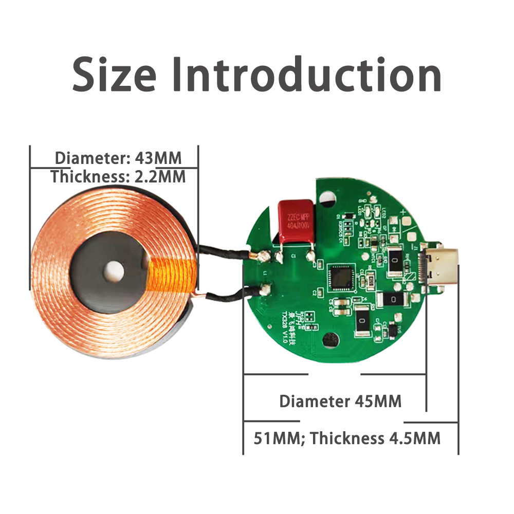 DC 5-12V 15W Wireless Charger Transmitter Module Type C + Coil QC/PD/QI Standard Fast Charging Circuit Board for Mobile Phone