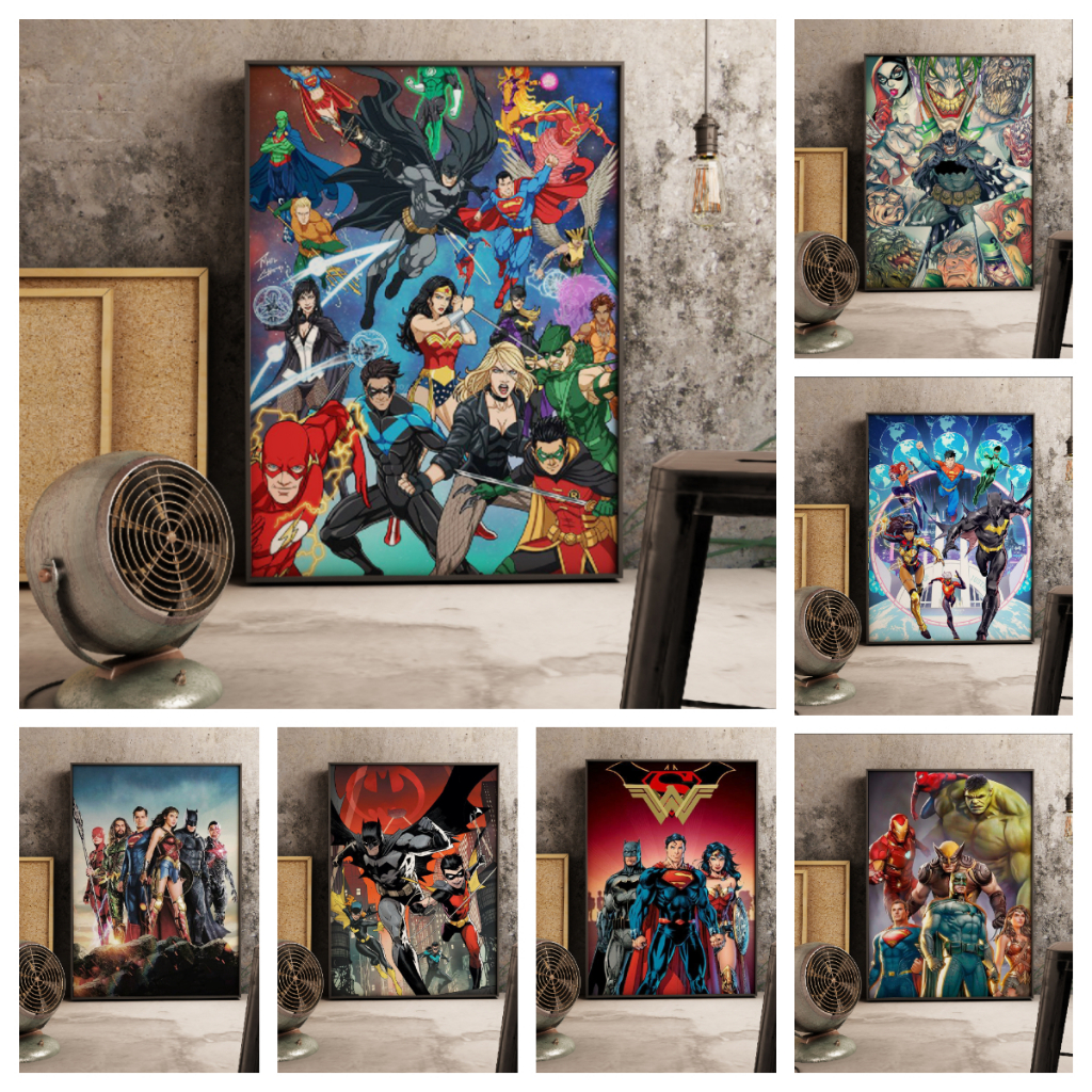 DC Canvas Justice League Batman Superman Wonder Woman The Flash Painting Poster Wall Print Pictures Home Decoration