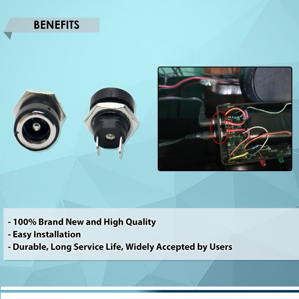 DC POWER SOCKET FEMALE, DC-022B 5.5x2.1mm 2-PIN 12V 3A, POWER SUPPLY JACK SOCKET PANEL MOUNT PLUG