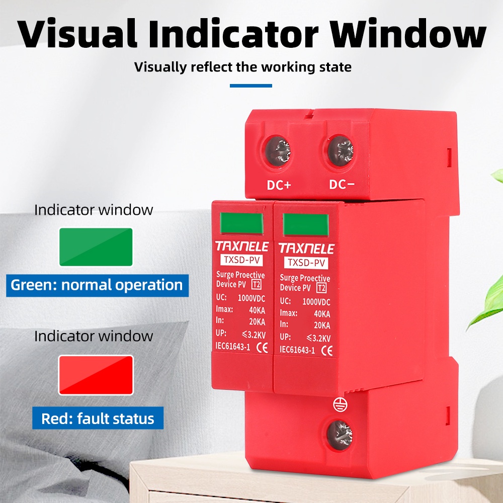DC SPD Surge Protective Device 2P 40KA 60KA 600V 800V 1000V Solar PV Photovoltaic Lightning Arrester