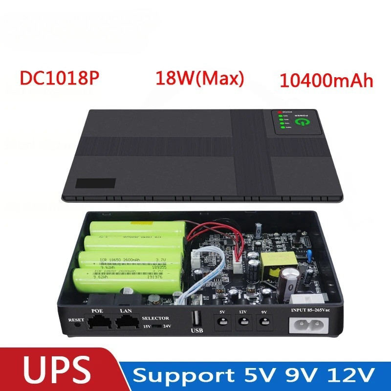 DC mini UPS 5V 9V12V USB DC POE LAN Interface 10400MA For Wifi Modem CCTV 10400mAh 18w Powerbank