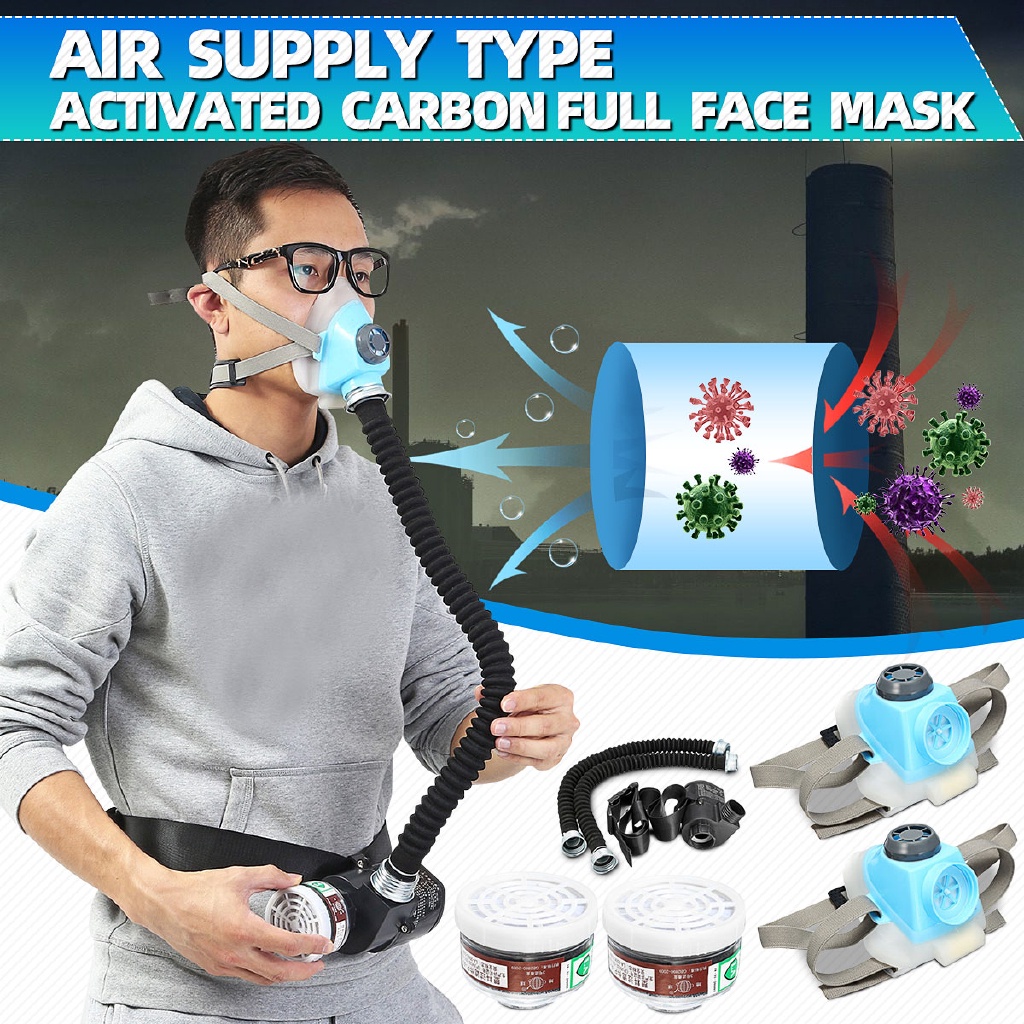 DC12.6v Respirator-System-Device Gas Electric Constant Flow Air Supplied Fed Respirator Half Face Gas Mask Pump 2Pipe Respirator