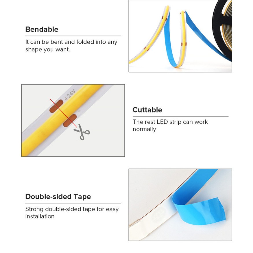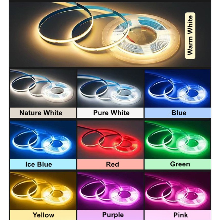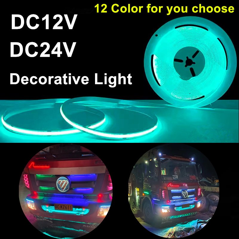 DC12V 24V COB LED Strip Lights 0.5m 1.2m 1.8m 2.4m High Density Flexible LED Tape Ice Blue Red Pink Mars Green Purple Orange Warm White Yellow Truck Decorative Light Car Warning Light
