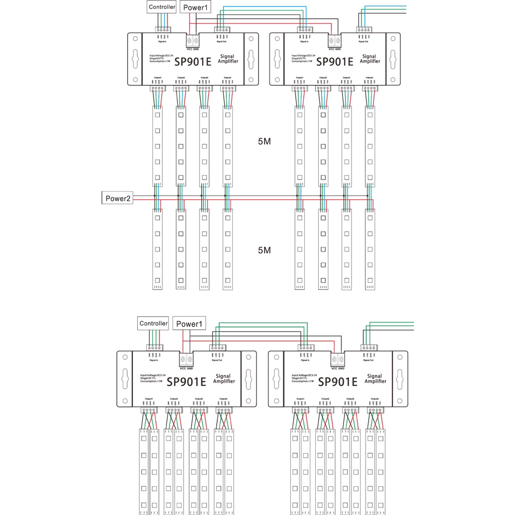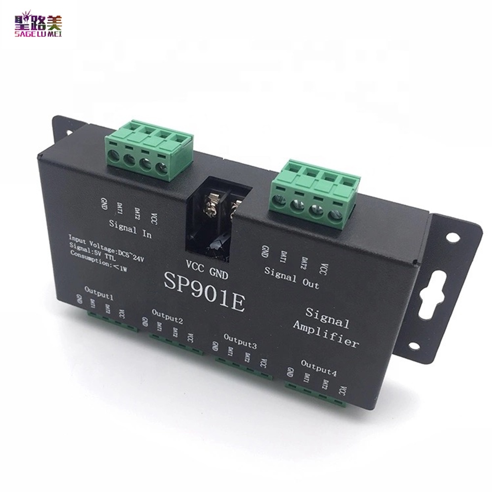DC5V-24V LED Signal Amplifier SP901E Led SPI Controller 4CH Group Amplifier for WS2812 2811 Dmx512 Led Pixels Strip Magic Color Display Modules Light