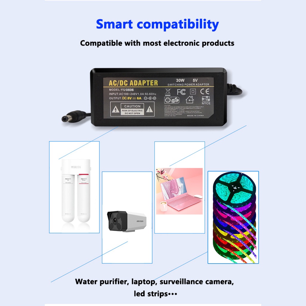DC5V 3A 6A 8A 10A Power Adapter Supply 5.5*2.1~2.5mm Female Connector Transformer AC110-220V For Camera CCTV