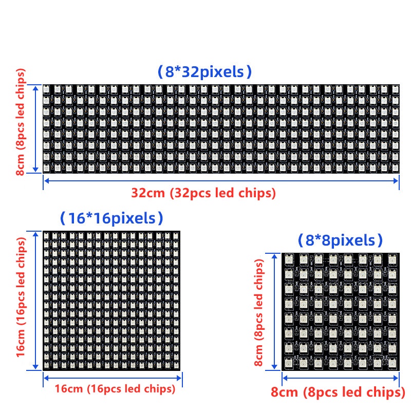DC5V 8*8cm,16*16cm,8*32cm led Pixels WS2812 Digital Flexible LED Programmed Panel Screen Individually Addressable Full Color Display Board Modules Light